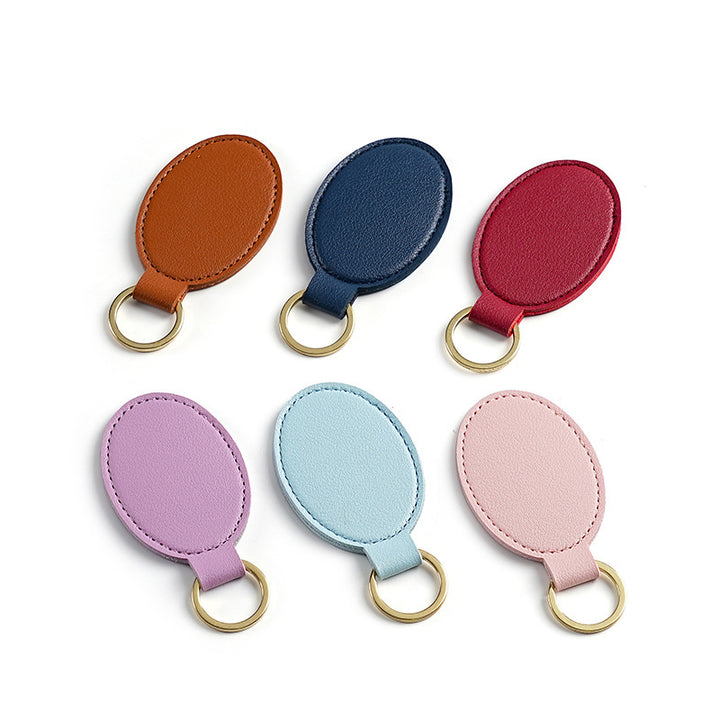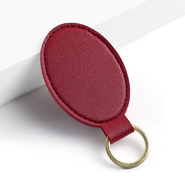 Cross-border pu leather keychain, fashionable and simple round leather buckle, logo leather p...