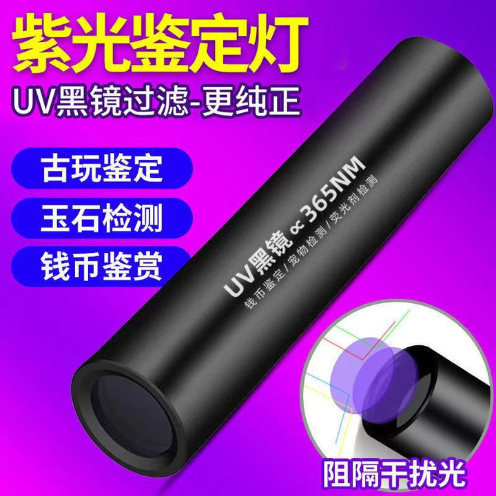 Cross-border purple light flashlight downlight black mirror 365 fluorescent ultraviolet light banknote inspection portable portable with mini flash...