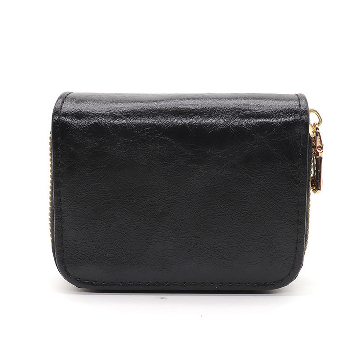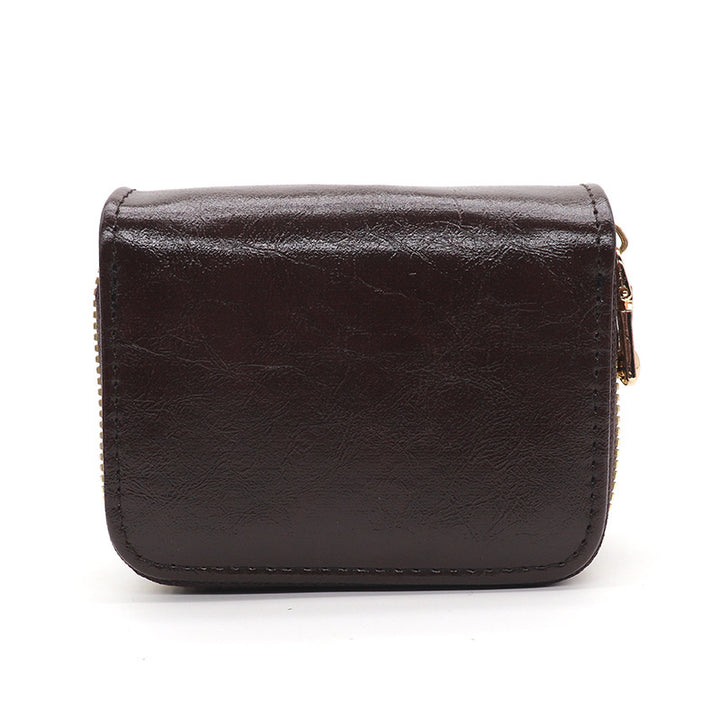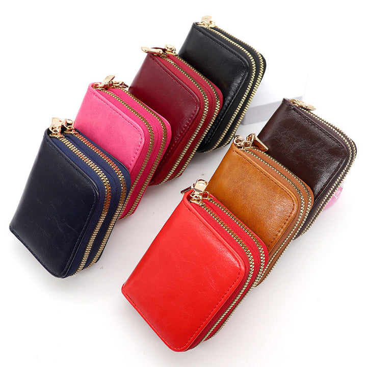 Cross-border retro oil wax organ card bag Large capacity multi-functional card holder Zipper change bag Women's anti-theft portable card bag