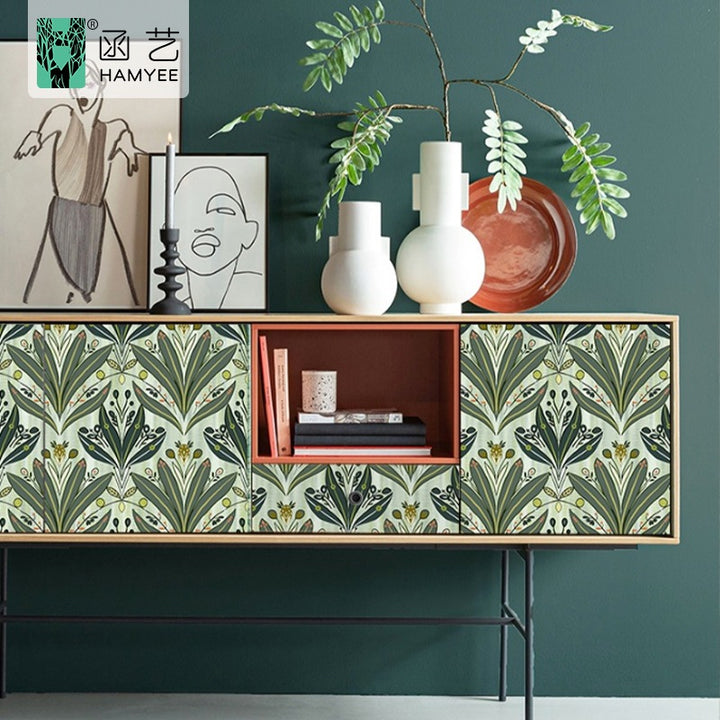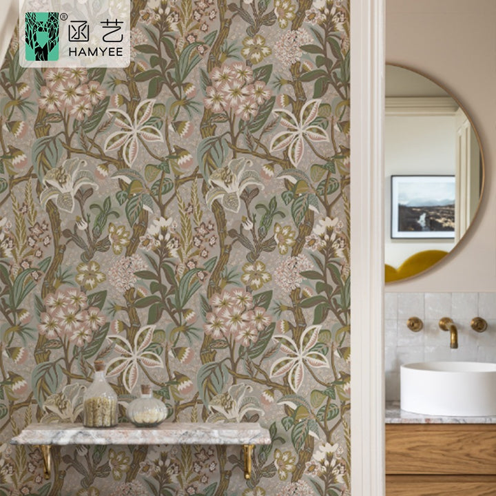 Cross-border retro wallpaper green grass flower plant wallpaper thickened self-adhesive sticker TV background wall paper