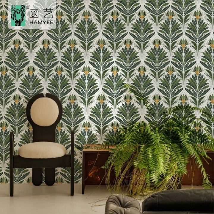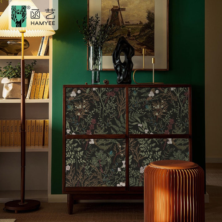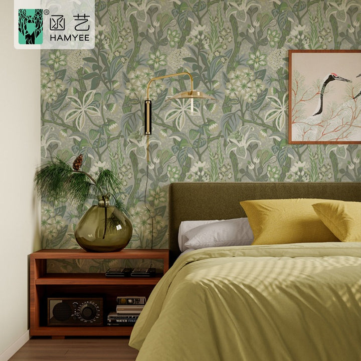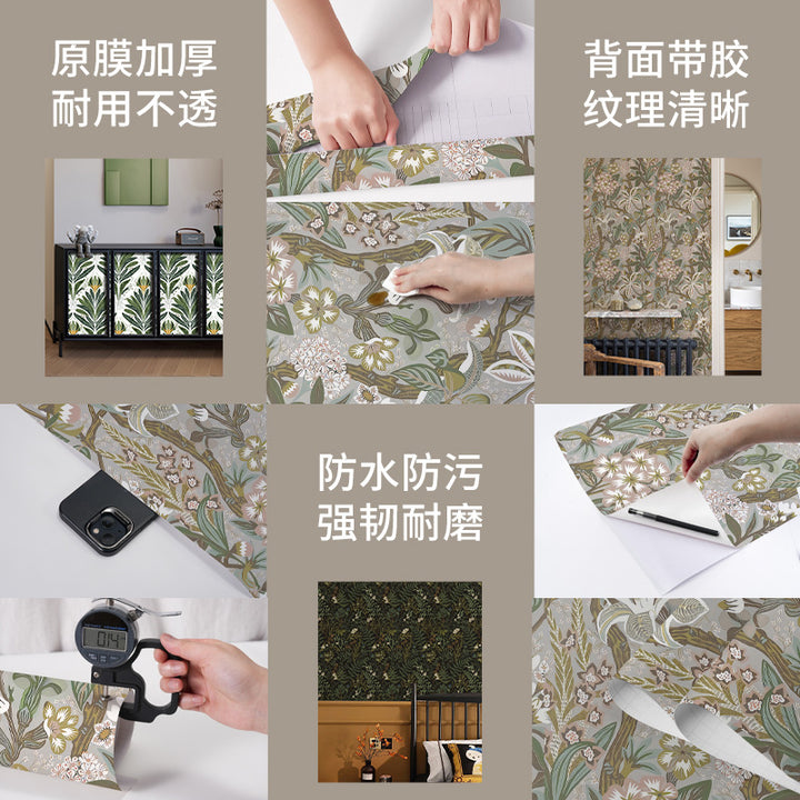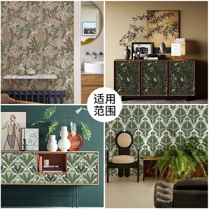 Cross-border retro wallpaper green grass flower plant wallpaper thickened self-adhesive sticker TV background wall paper