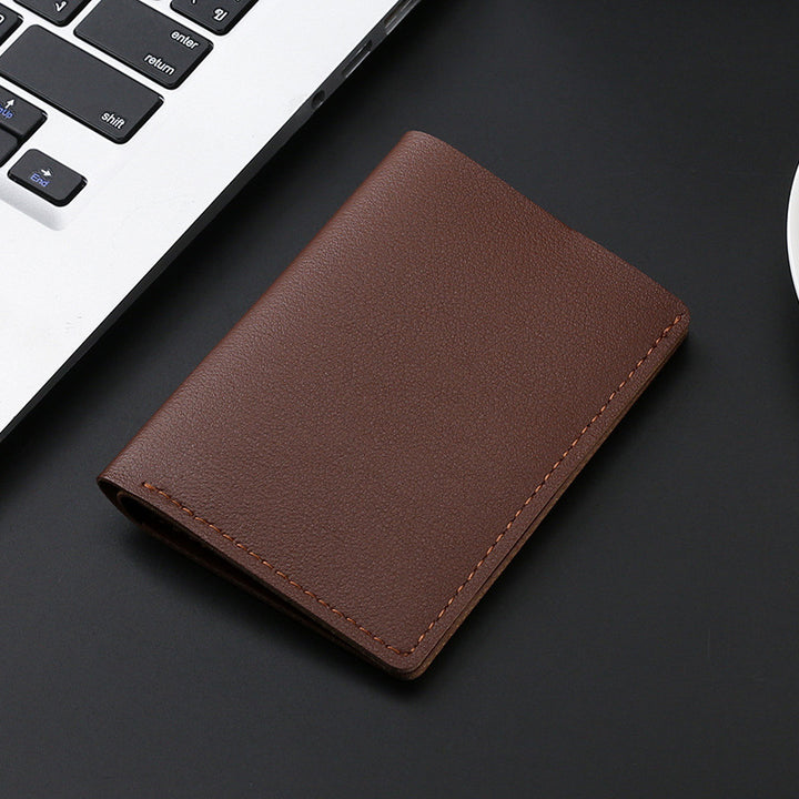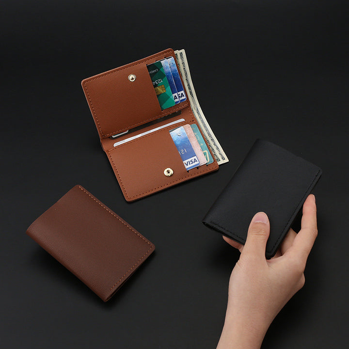 Cross-border short simple card holder, men's and women's real soft leather wallet, retro ultra-thin women's wallet, driver's license, bank card pac...