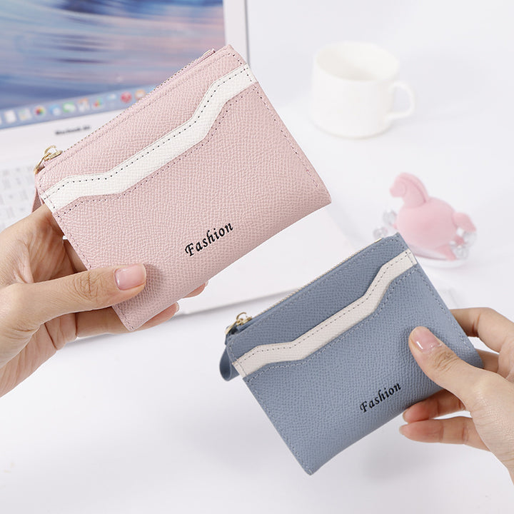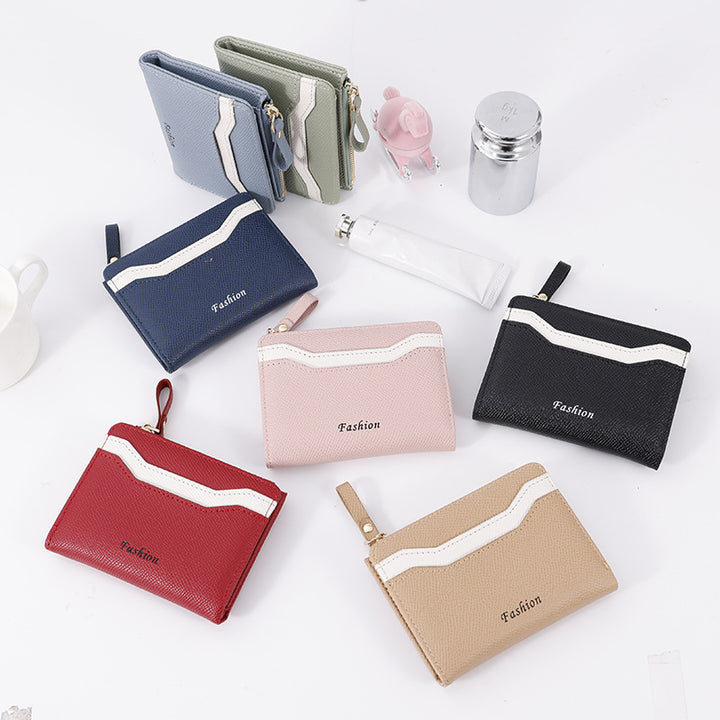 Cross-border small fresh women's wallet, 20% off short, multi-card color matching storage, student card bag, change bag.