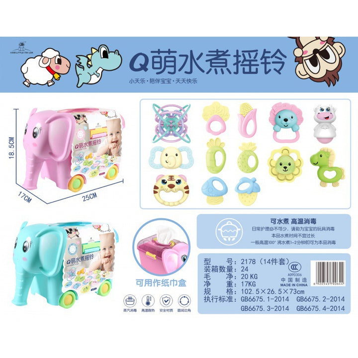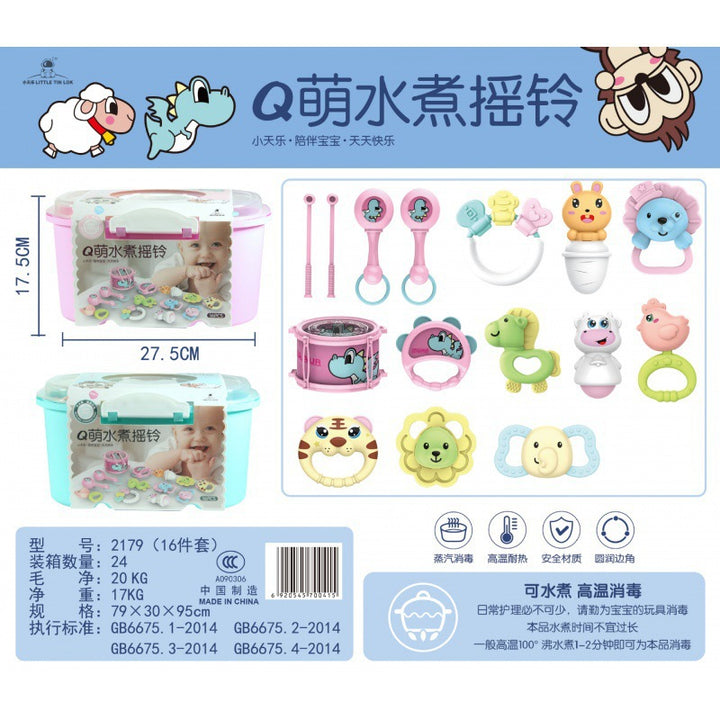 Cross-border South East Asia Baby Hand Rattle Toy Storage Box Baby Coaxing Artifact Sand Hammer Educational Teeth Biting Tooth Glue Ball Set