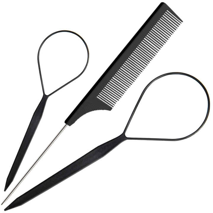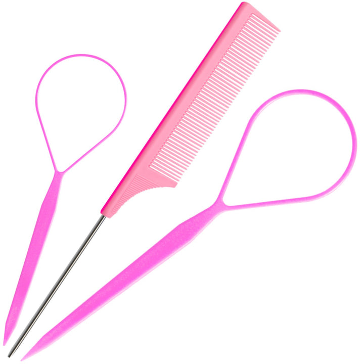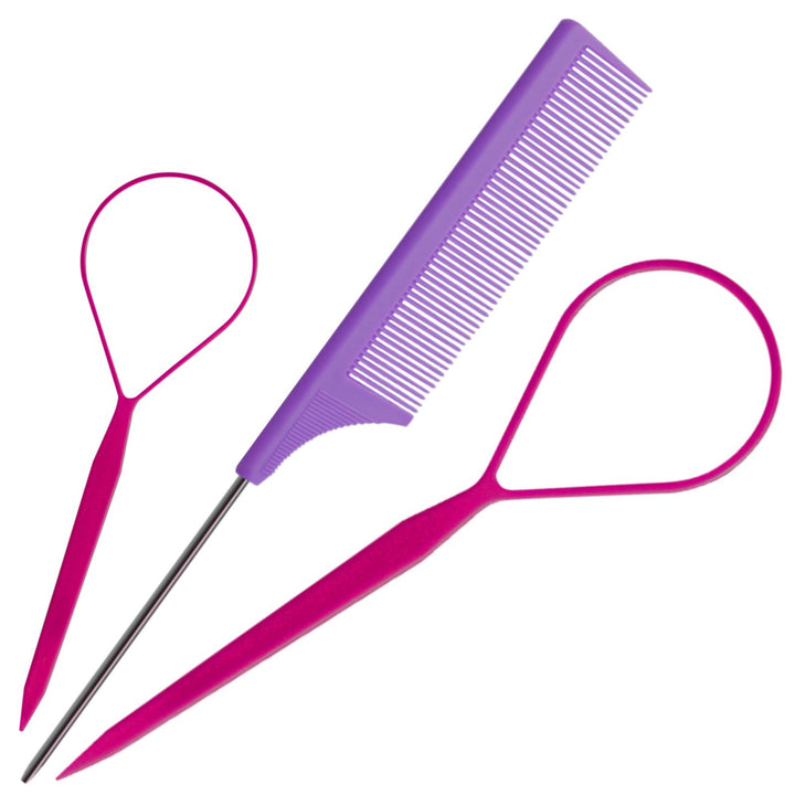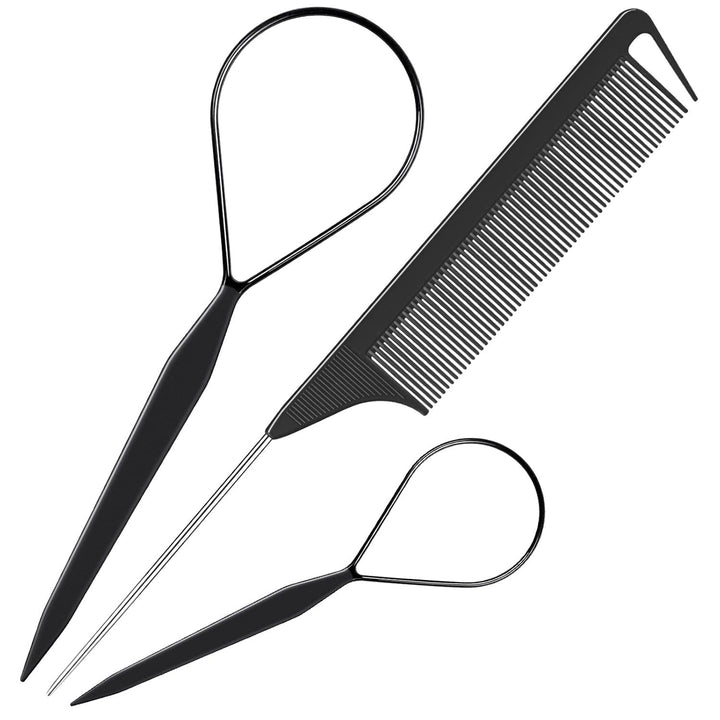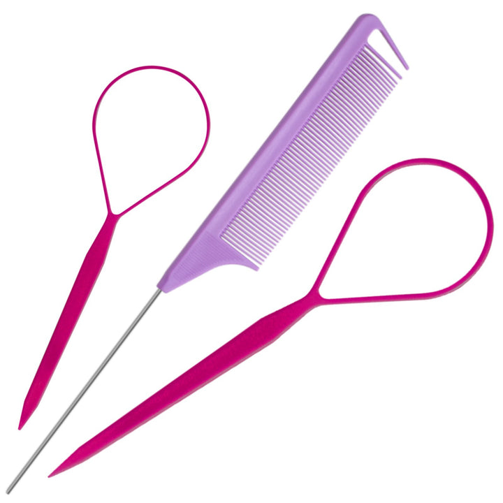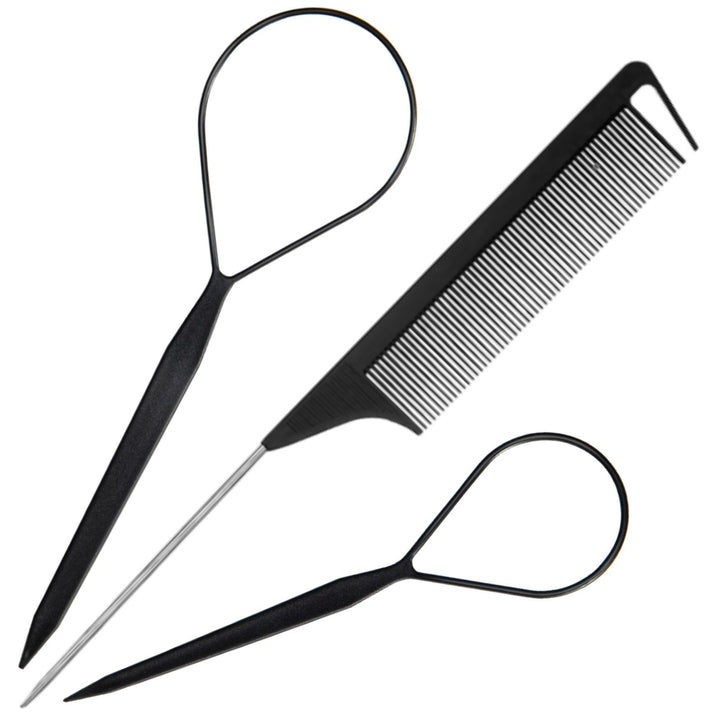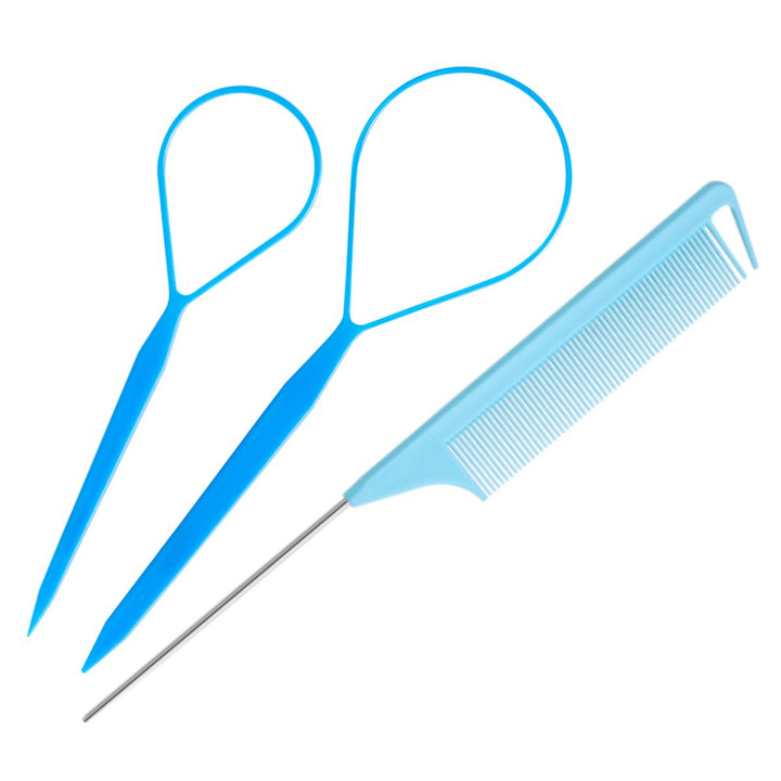 Cross-border special hair braiding tools 3-piece set Steel needle tip tail highlight comb Long tail hook hair comb Pull needle pick trigger