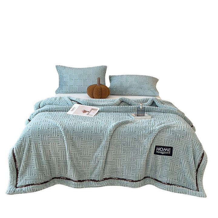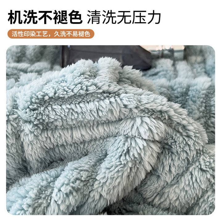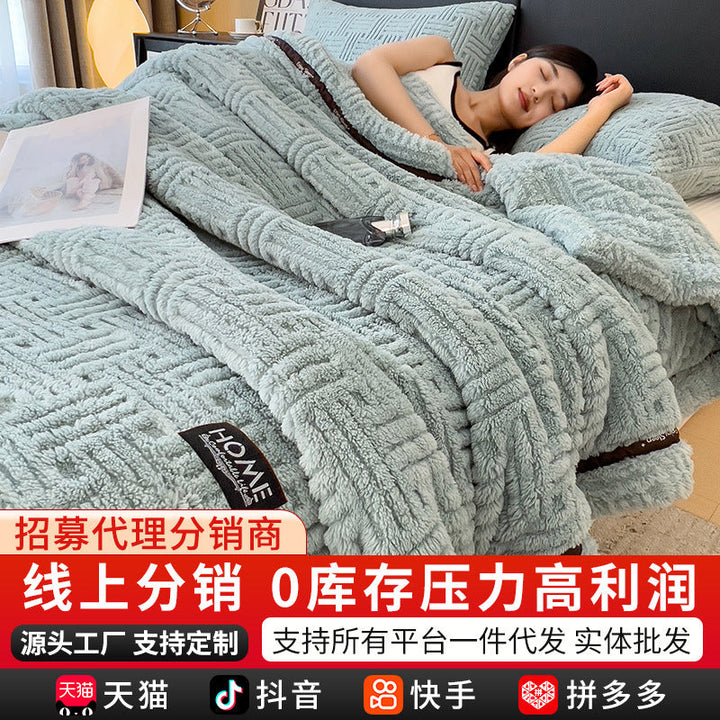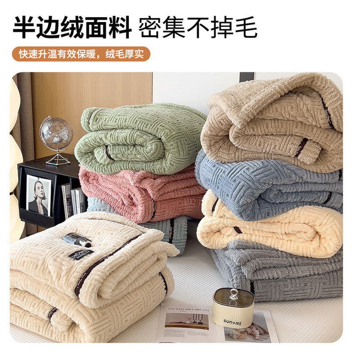 Cross-border spot autumn and winter new high gram weight solid color double layer thickened jacquard flannel blanket group buying wholesale hair