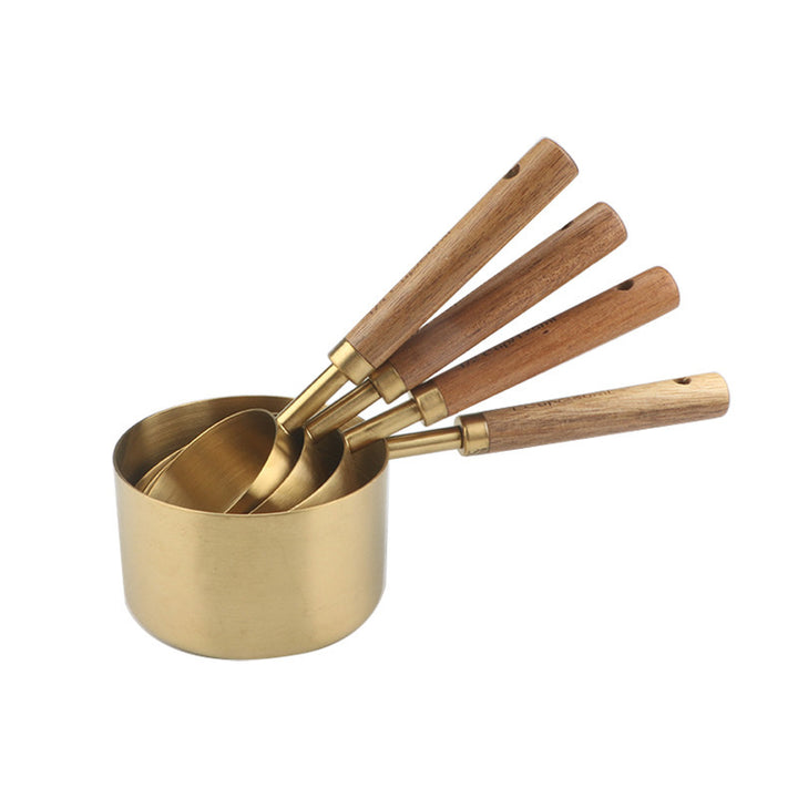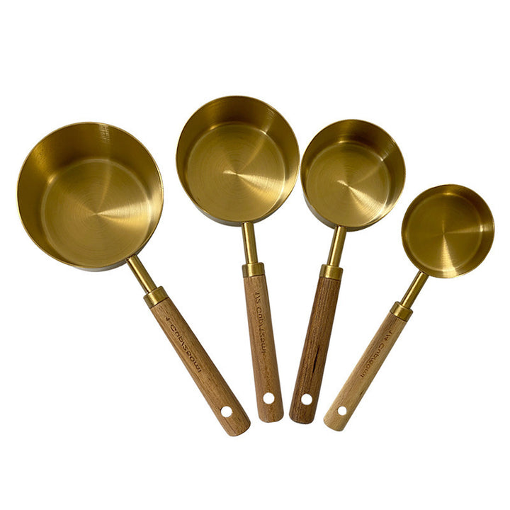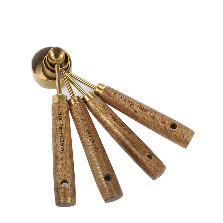 Cross-border spot measuring cup measuring spoon baking kitchen measuring gold-plated spoon seasoning spoon acacia handle fcm8-piece set