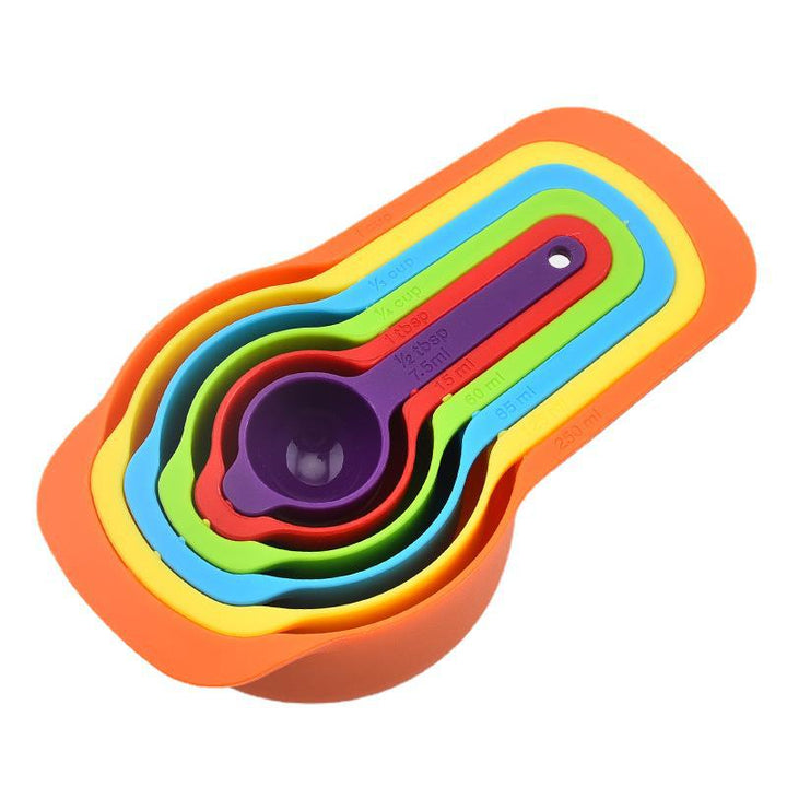 Cross-border spot multicolored PP plastic kitchen coffee measuring spoon set, kitchen baking measuring spoon folding measuring cup six-piece set
