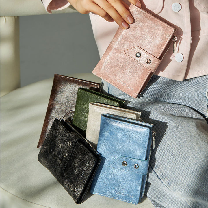 Black, brown, green, powder, blue, white |