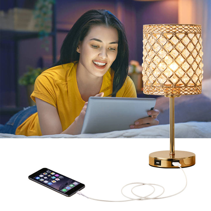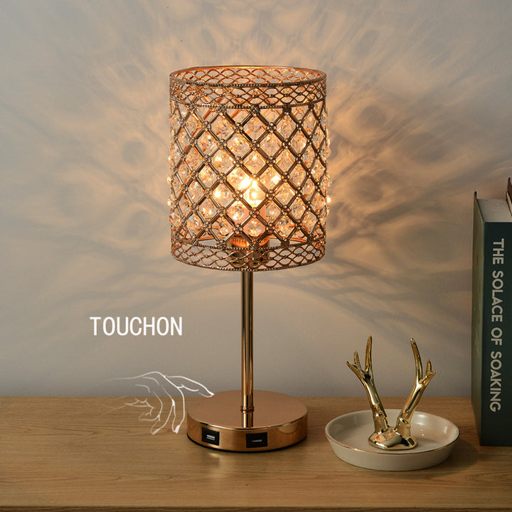 Cross-border USB charging desk lamp creative bedroom bedside lamp US standard fabric decorative book lamp crystal touch desk lamp