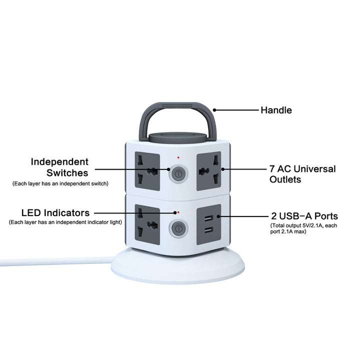 Cross-border vertical socket with handle belt overload independent switch power strip multi-layer universal desktop plug customization