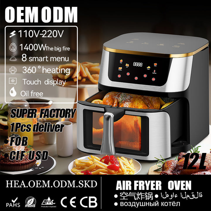 Cross-border visual stainless steel 10L air fryer household large-capacity electric fryer multi-functional touch manufacturer wholesale