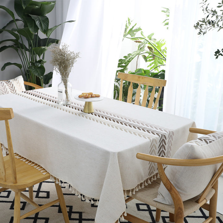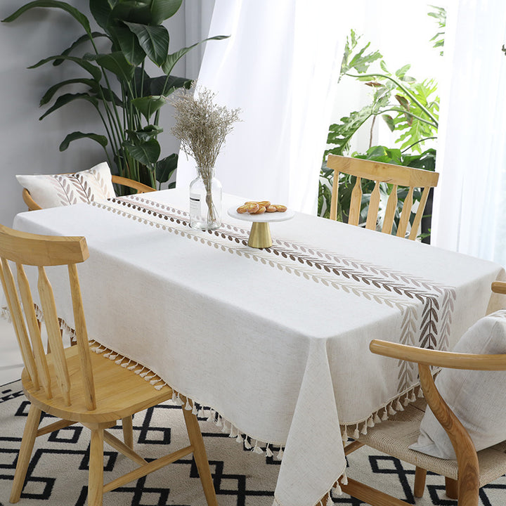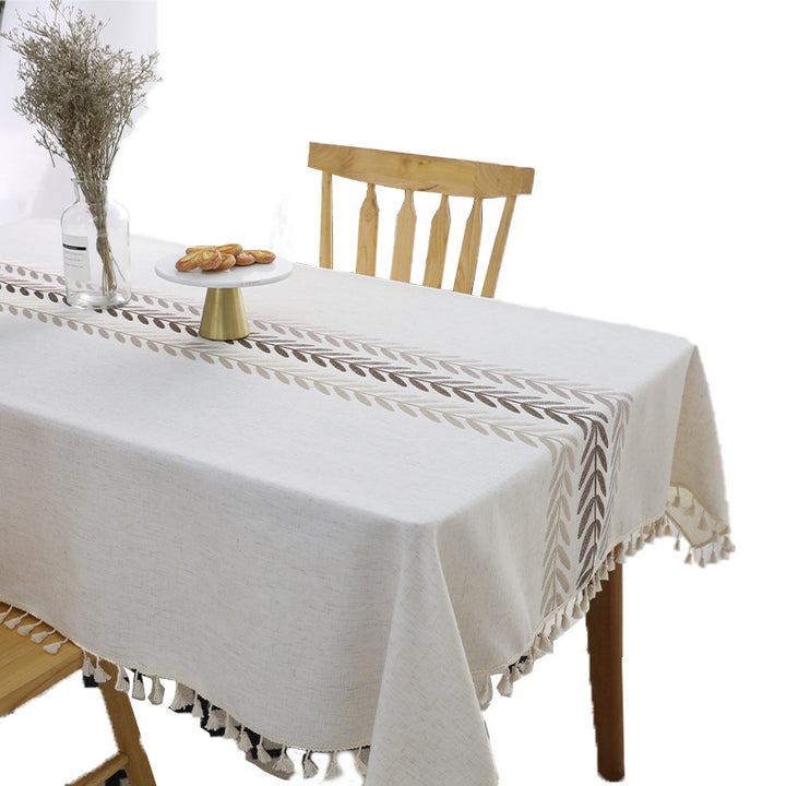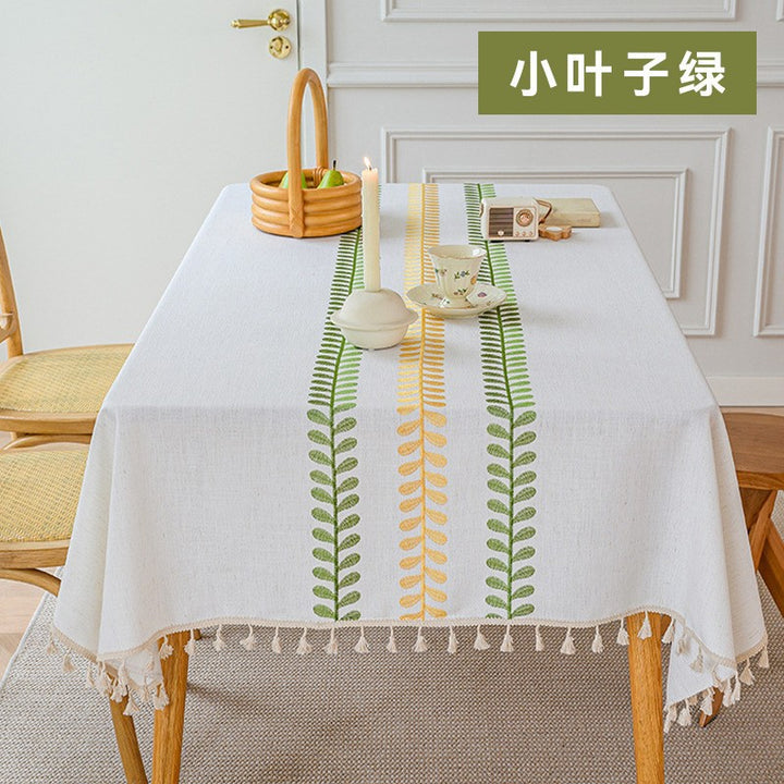 Cross-border waterproof cotton and linen tablecloth fringed embroidery rectangular household dining table cloth tablecloth coffee table dust cover ...