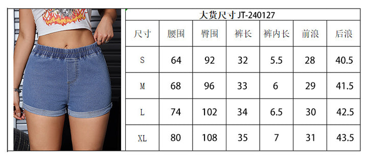Cross-border wholesale elastic waist denim shorts women's high waist large size summer loose small elastic five-point pants micro-elastic