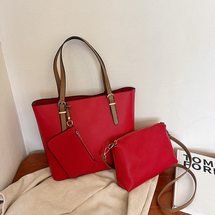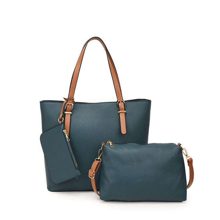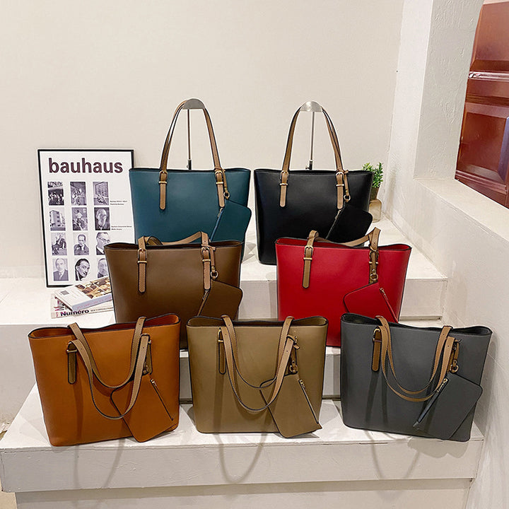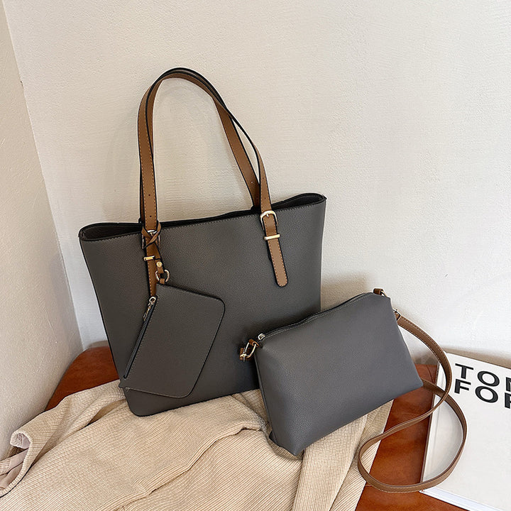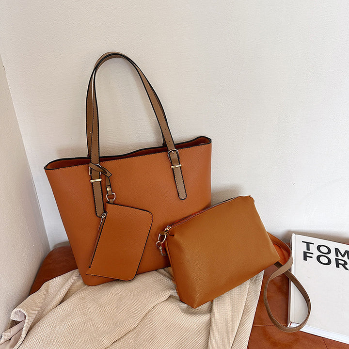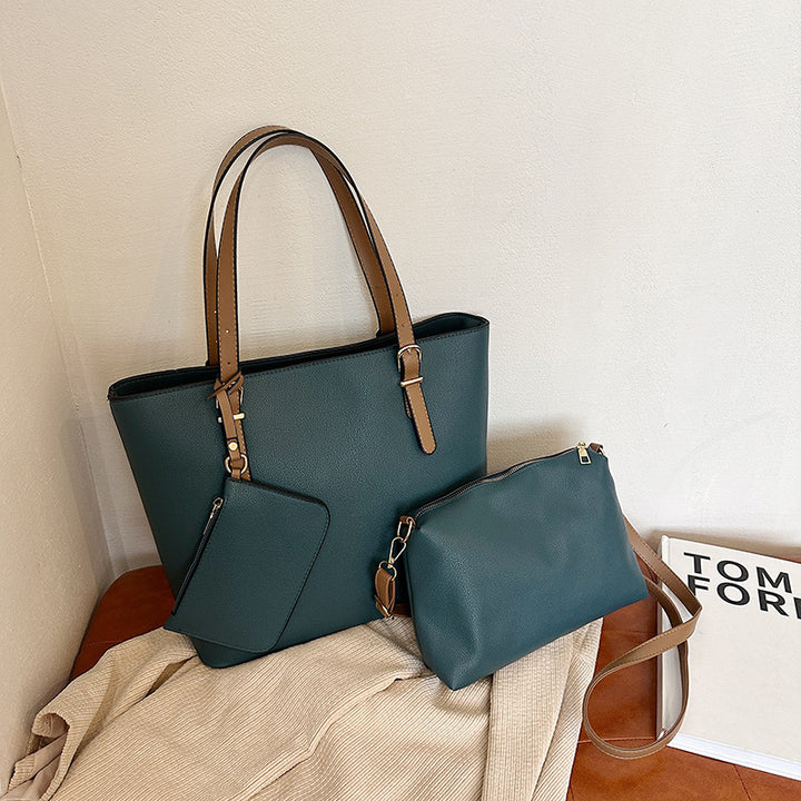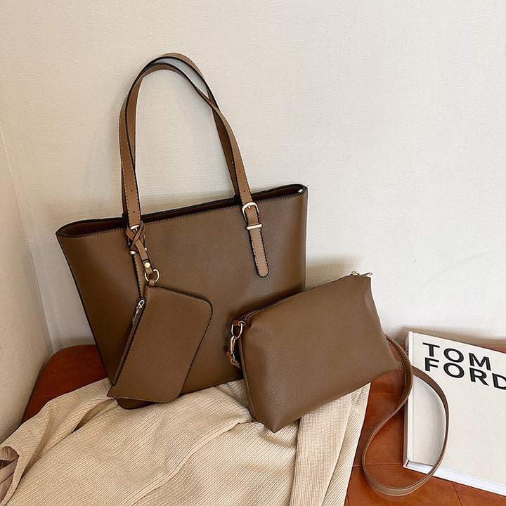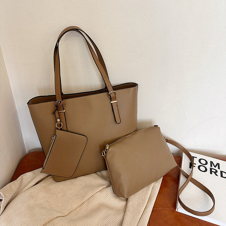 Cross-border wholesale handbag large-capacity commuter tote bag casual soft leather handbag three-piece shoulder women's bag