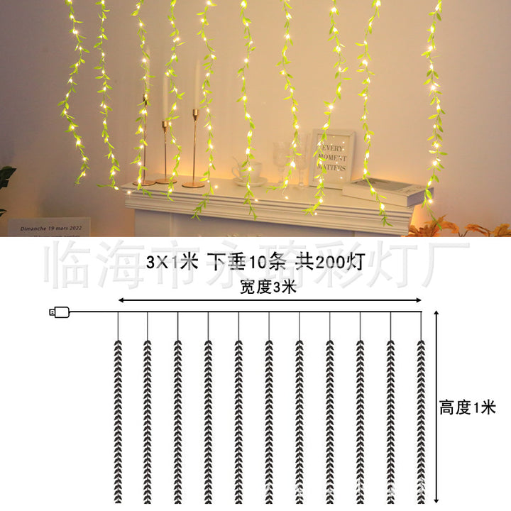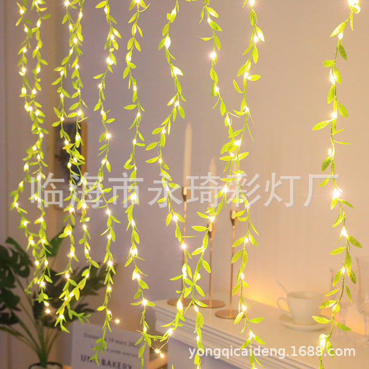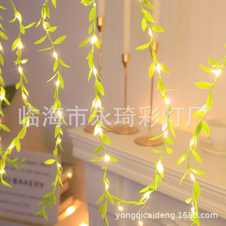 Cross-border wholesale LED copper lamp Internet celebrity plant simulation willow leaf curtain lamp ice strip lamp waterfall lamp weeping willow de...