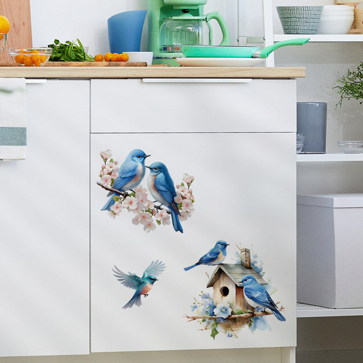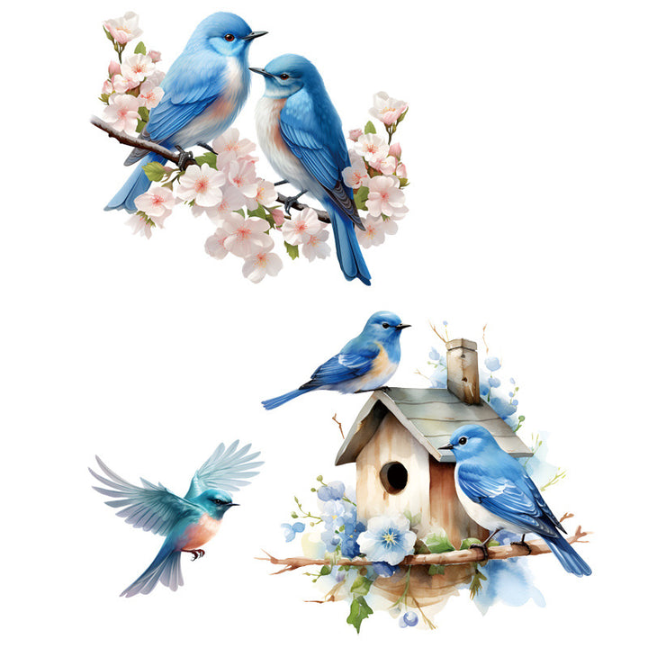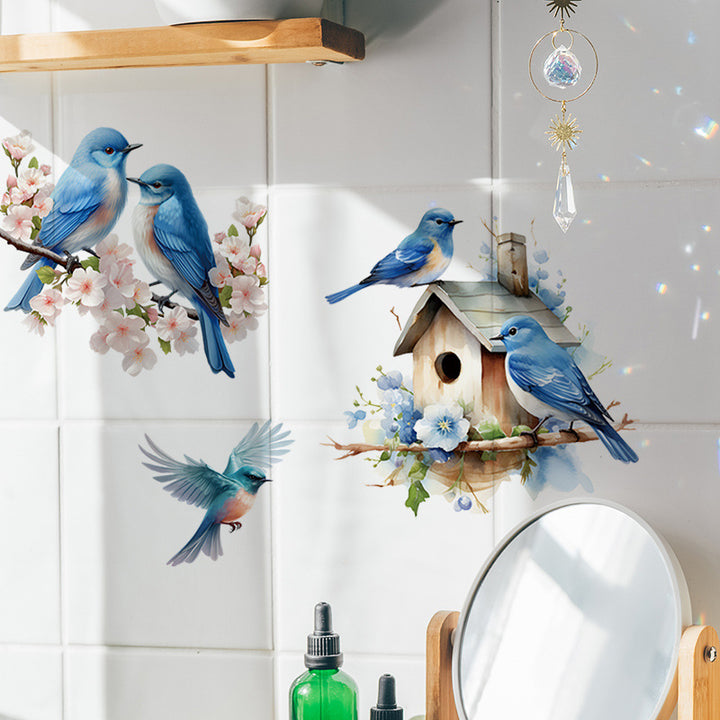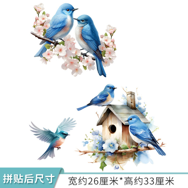 Cross-border wholesale toilet toilet lid blue bird sticker removable plant flower house bathroom toilet sticker