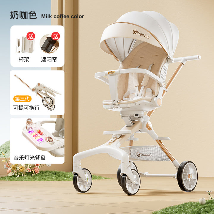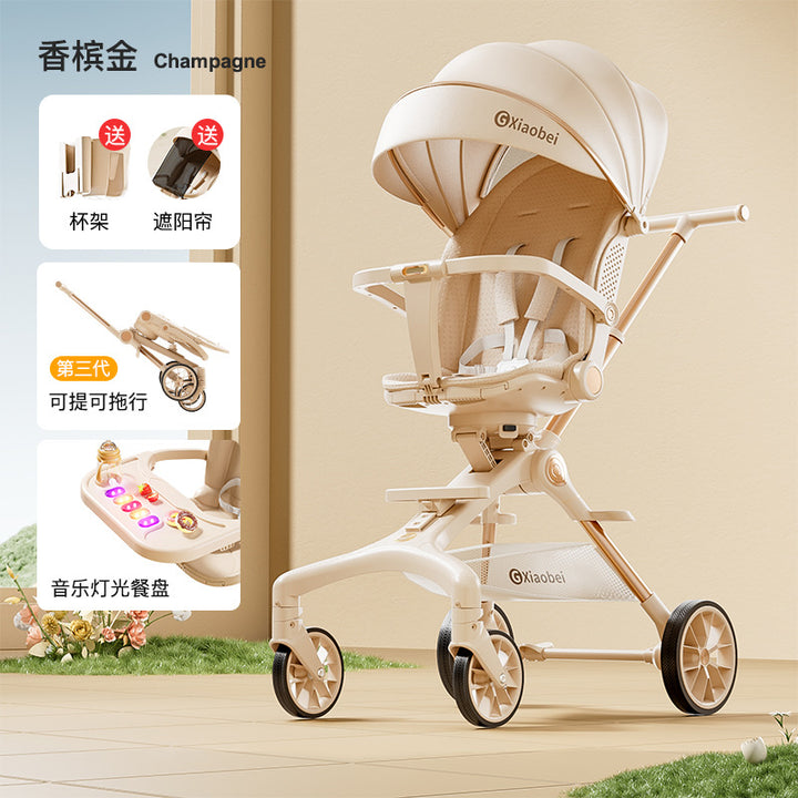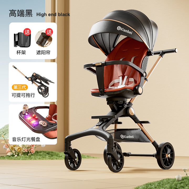 Cross-border with shed reversing reclining cushion baby walking baby children baby walking cart folding lightweight two-way portable baby
