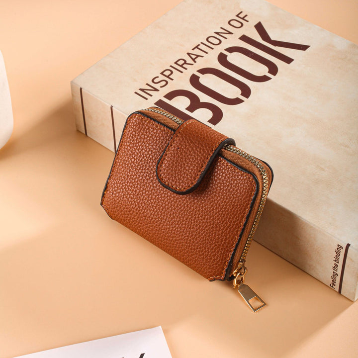Cross-border women's two-fold solid color lychee pattern women's wallet with makeup mirror multi-card change bag compartment zipper bag