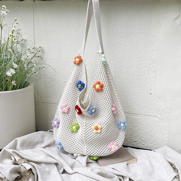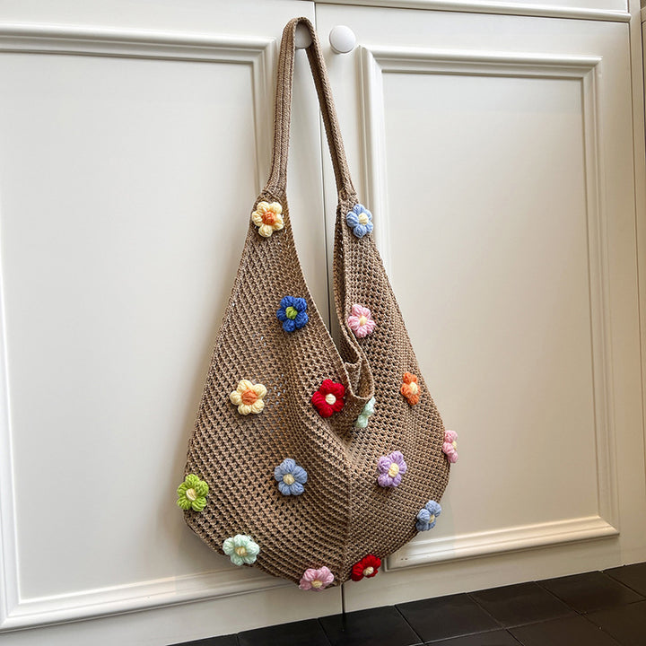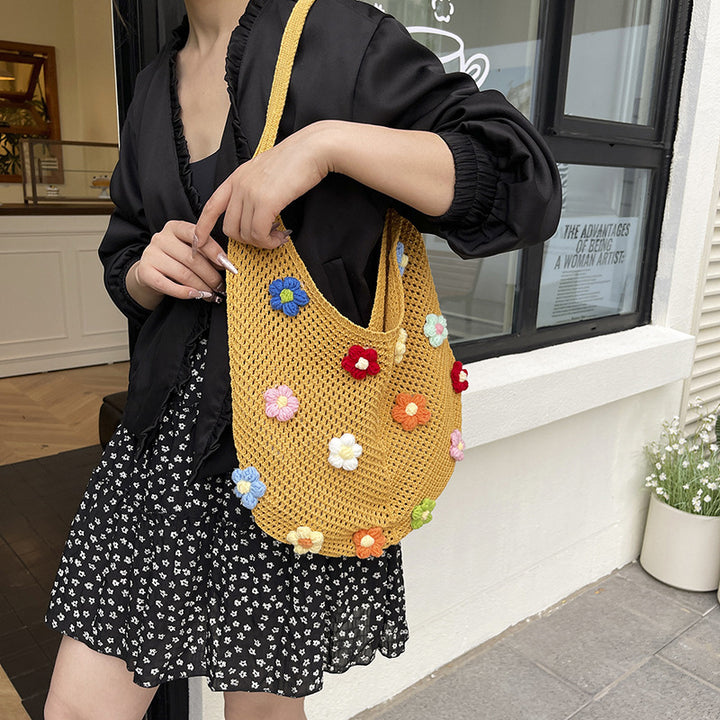 Cross-border woven bag women's 2025 new Korean version shoulder tote bag lazy wind knitted ho...