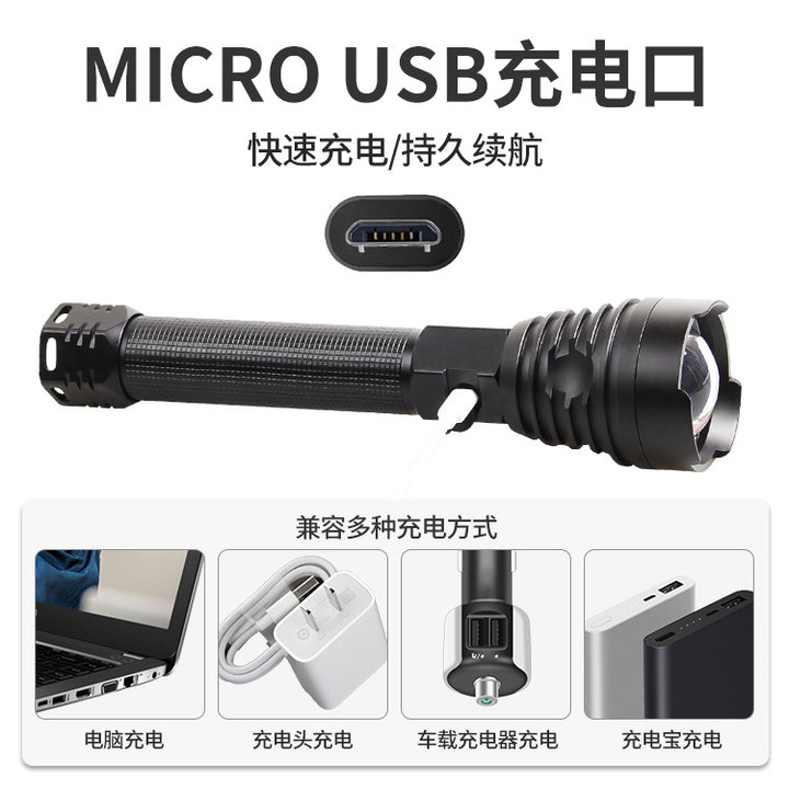 Cross-border XHP90 strong light flashlight USB charging outdoor waterproof power display high power LED flashlight