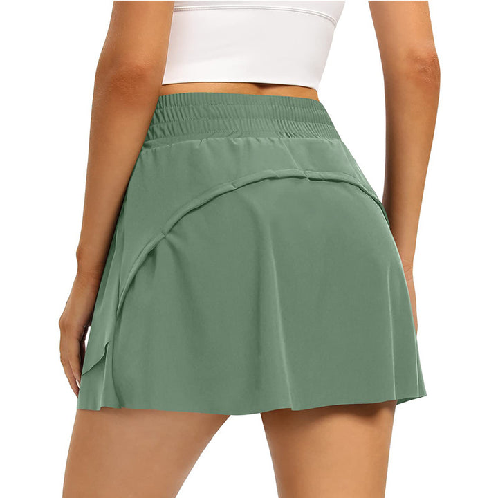 Cross-border yoga fitness culottes, fake two high-waisted hip-covering pleated sports skirts,...