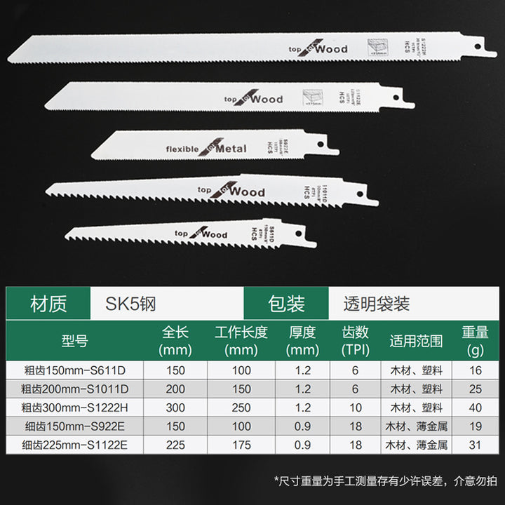 Coarse teeth 150mm-S611D, Coarse teeth 200mm-S1011D, Coarse tooth 300mm-S1222H, Fine teeth 150mm-S922E, Fine tooth 225mm-S1122E |