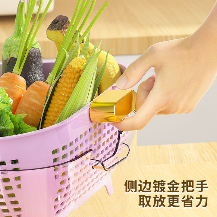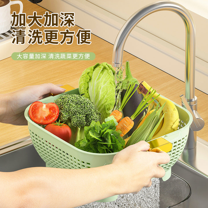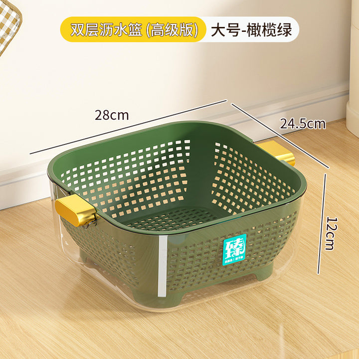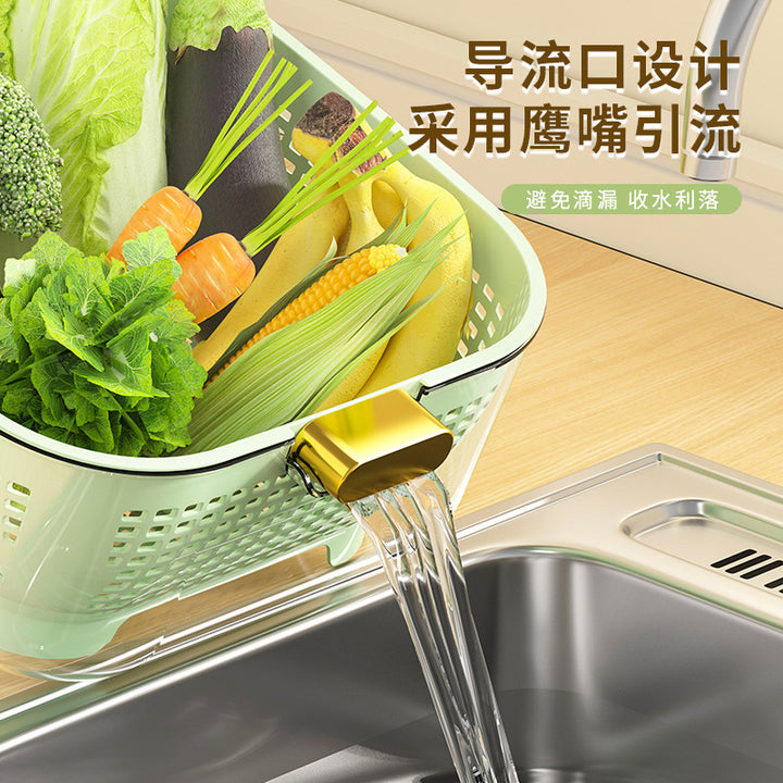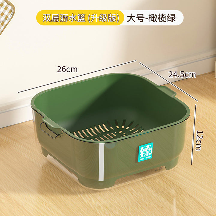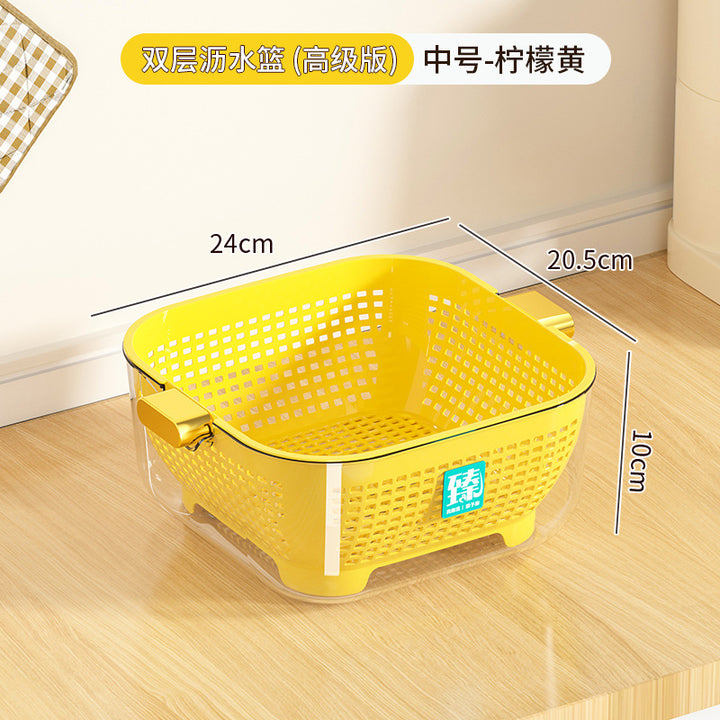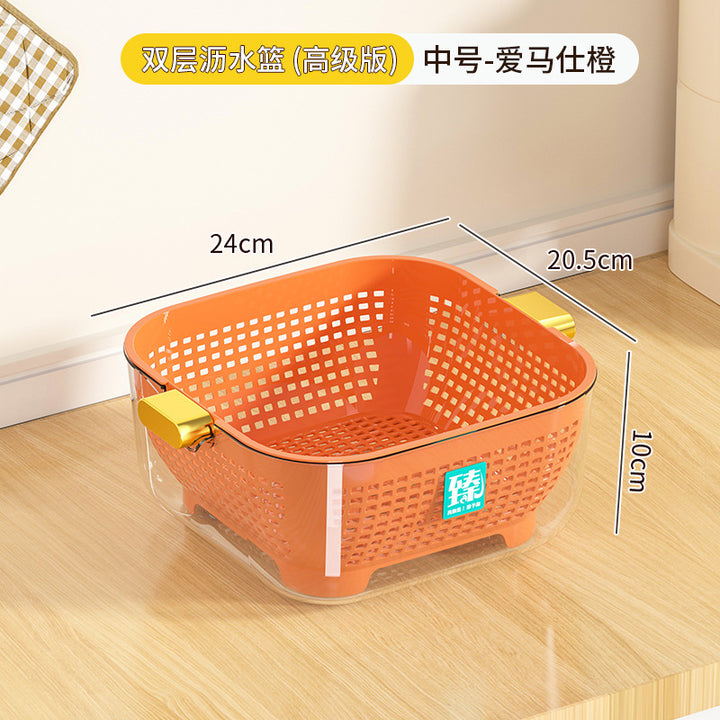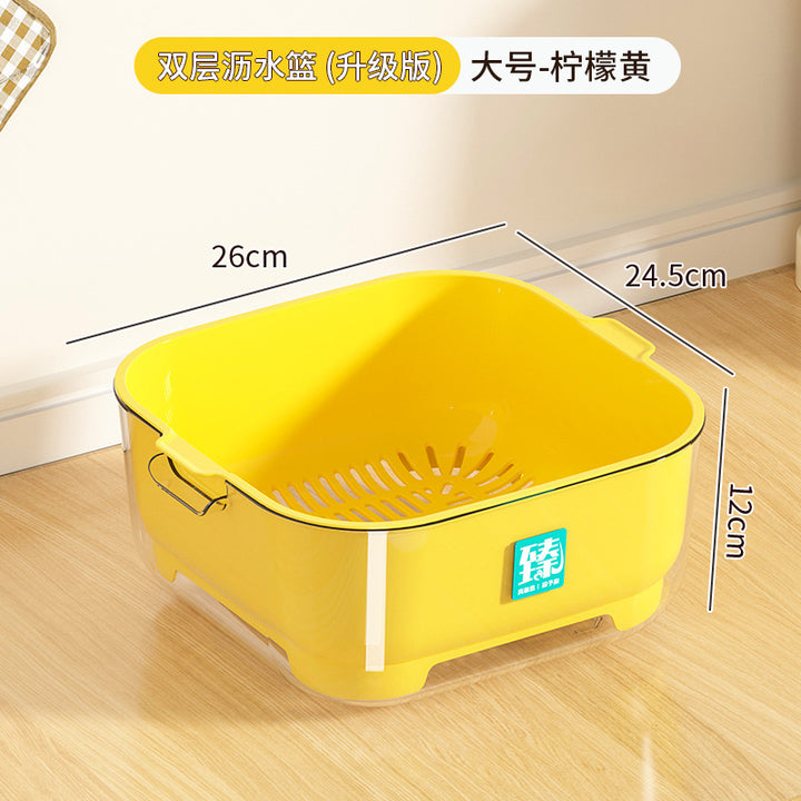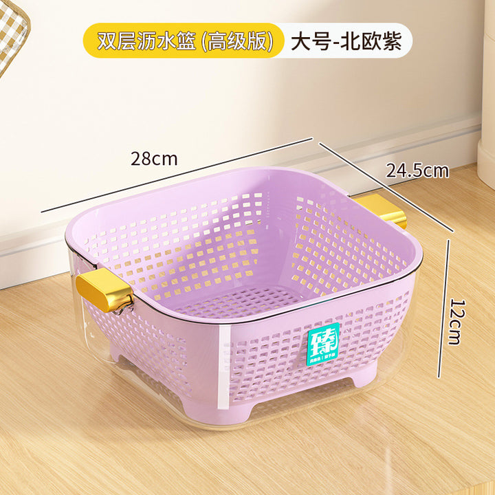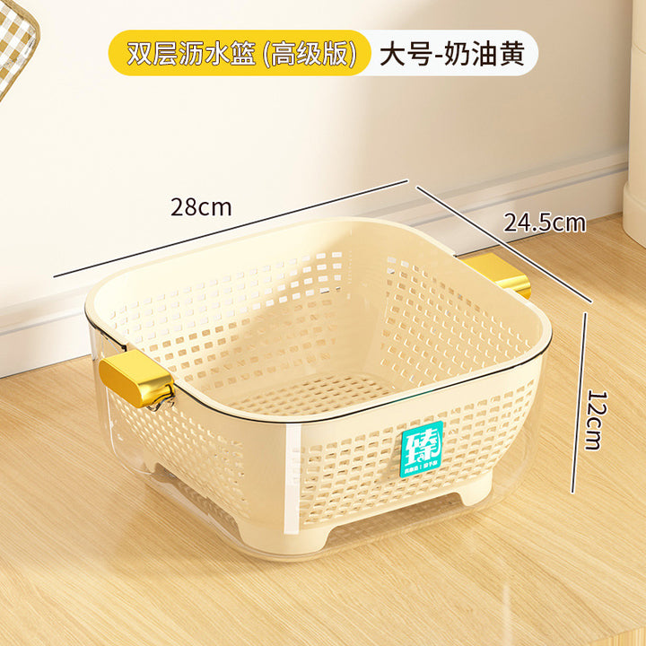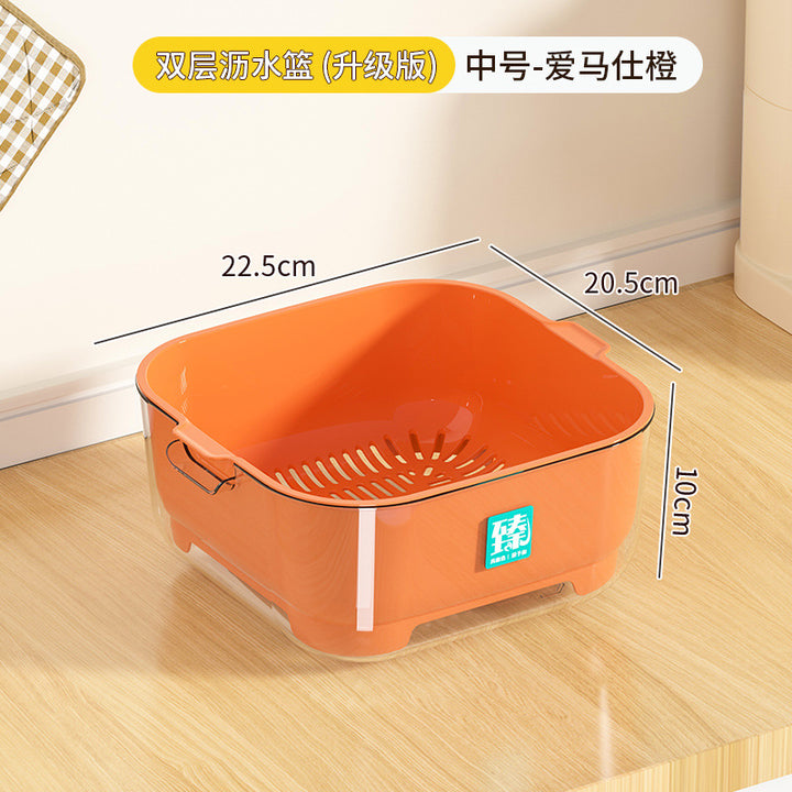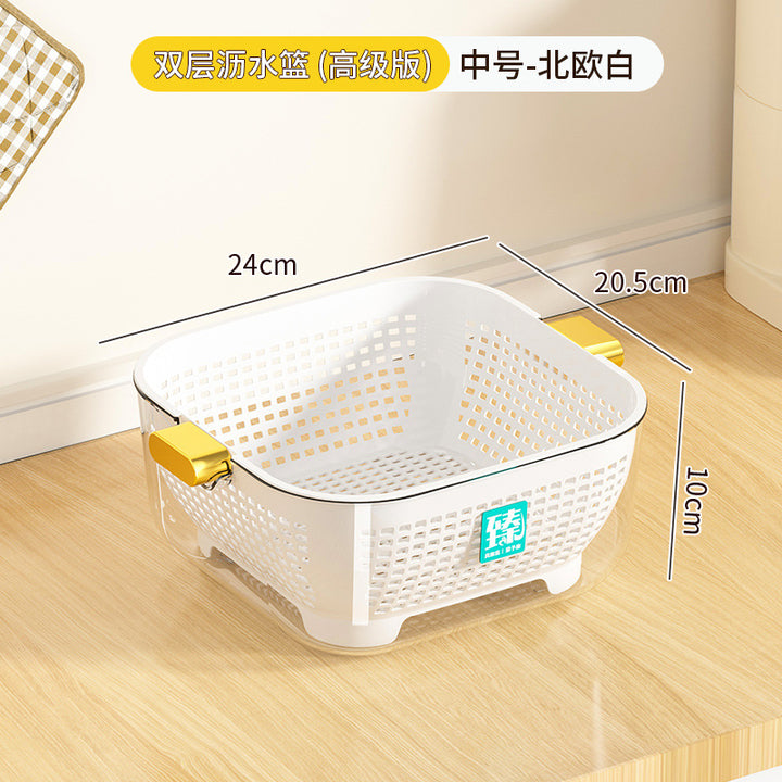 Customizable PET kitchen drain basket can be printed and labeled Internet celebrity vegetable and fruit washing basin Double layer drain basin thic...