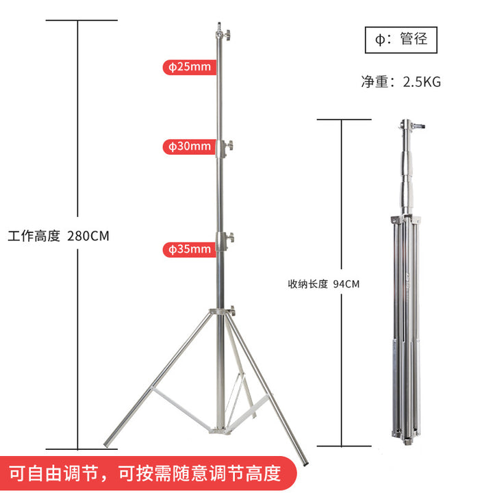 Customized 280cm studio flash light stand photography tripod photography light stand metal material stainless steel bracket