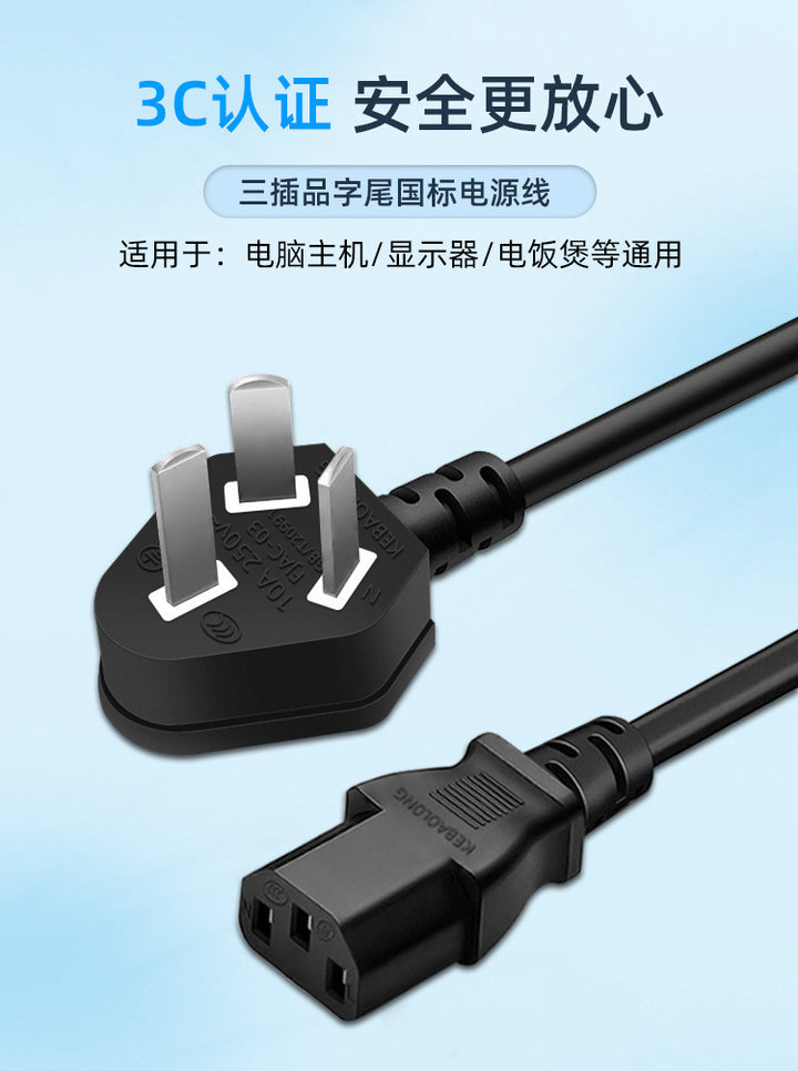 Customized 3C certification national standard three-plug word tail AC power cord rice cooker computer electrical three-hole plug cable