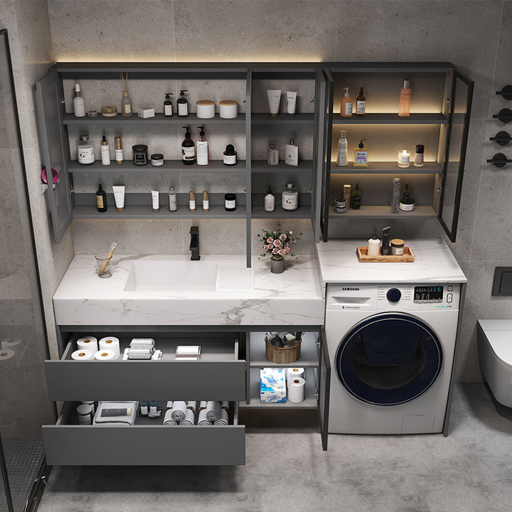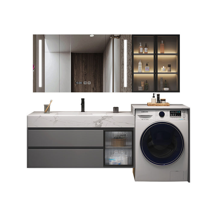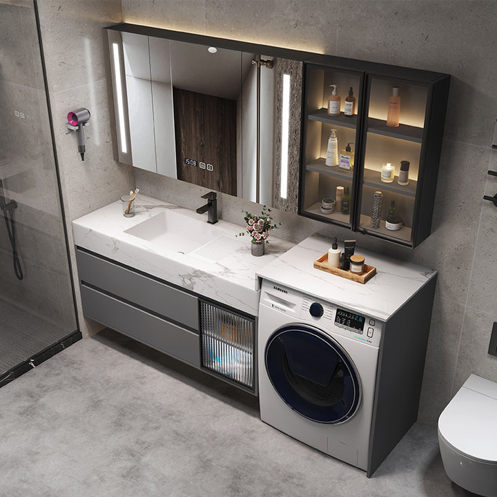 [Customized] Bathroom Washing Machine Integrated Cabinet Balcony Bathroom Slate Washbasin Cabinet Smart Mirror Cabinet