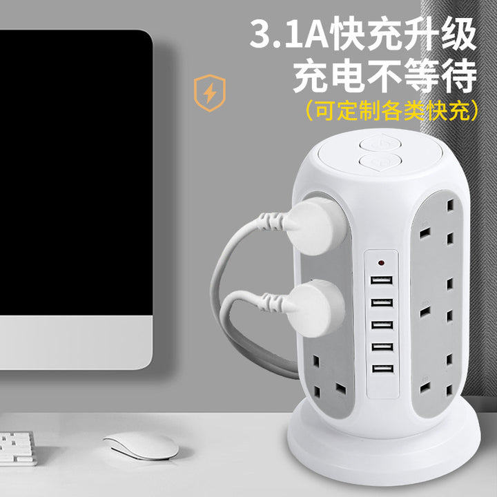 Customized British standard intelligent vertical socket, special for porous USB multi-function power strip creative tower socket