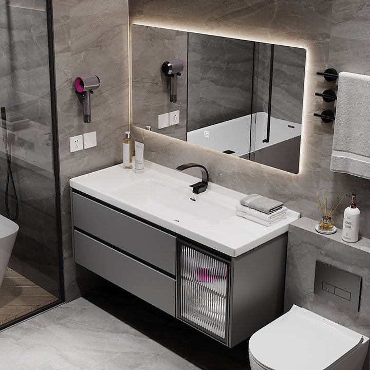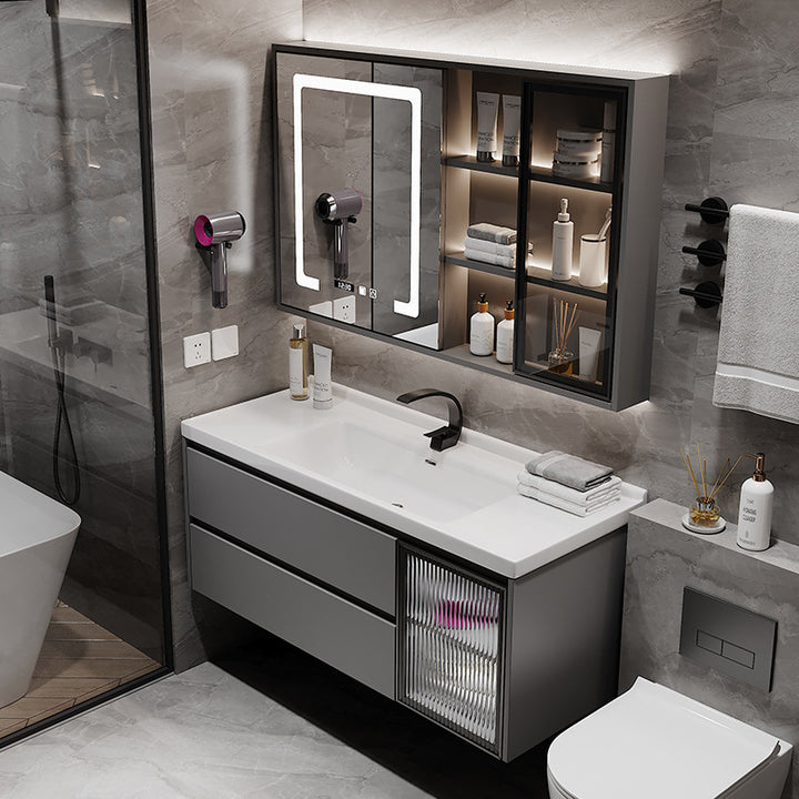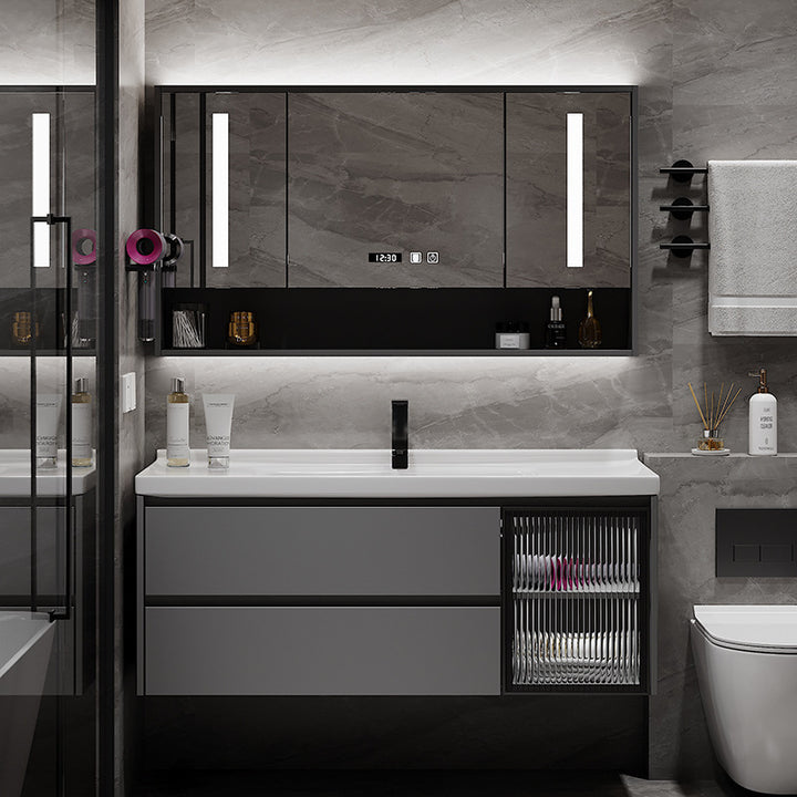 [Customized] Ceramic integrated basin, bathroom cabinet combination, solid wood bathroom cabi...
