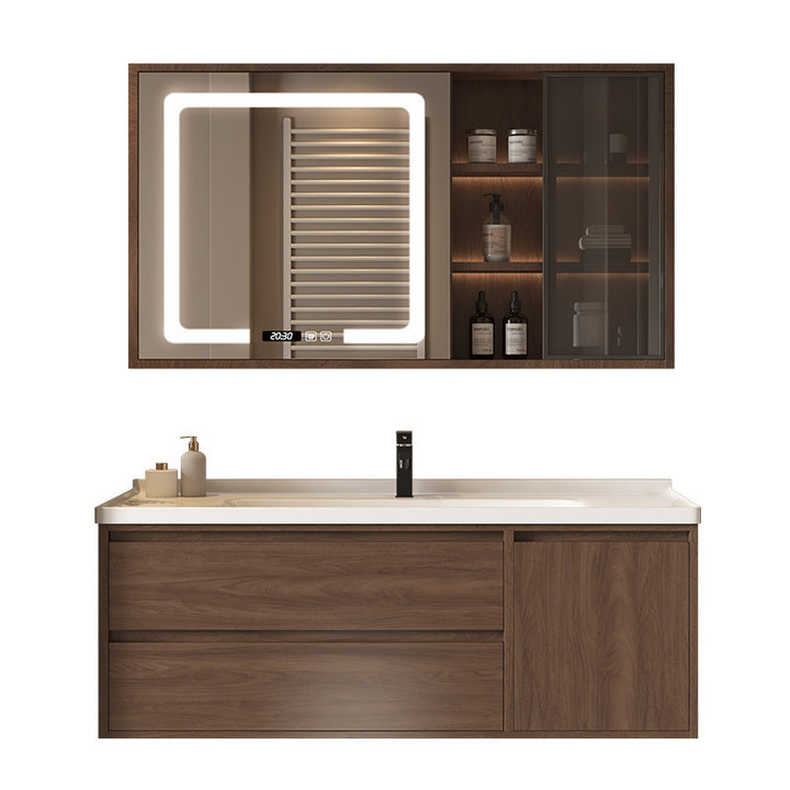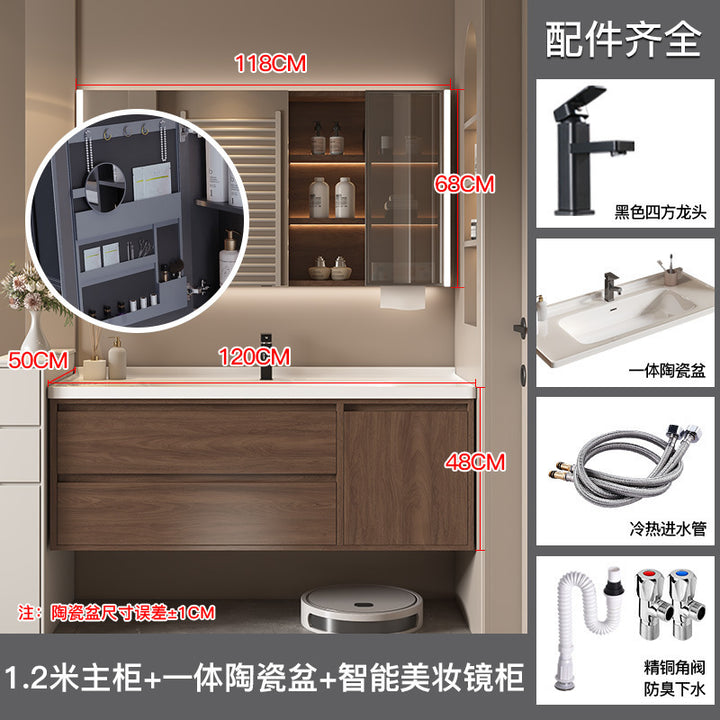 [Customized] Ceramic integrated basin, bathroom cabinet, walnut color, solid wood bathroom cabinet, bathroom, hand wash, sink
