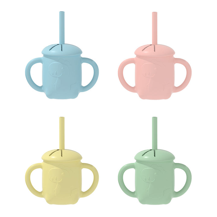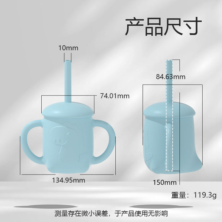 Customized children's binaural straw cup, silicone water cup, cartoon snack cup, baby learning drink cup, feeding complementary food cup
