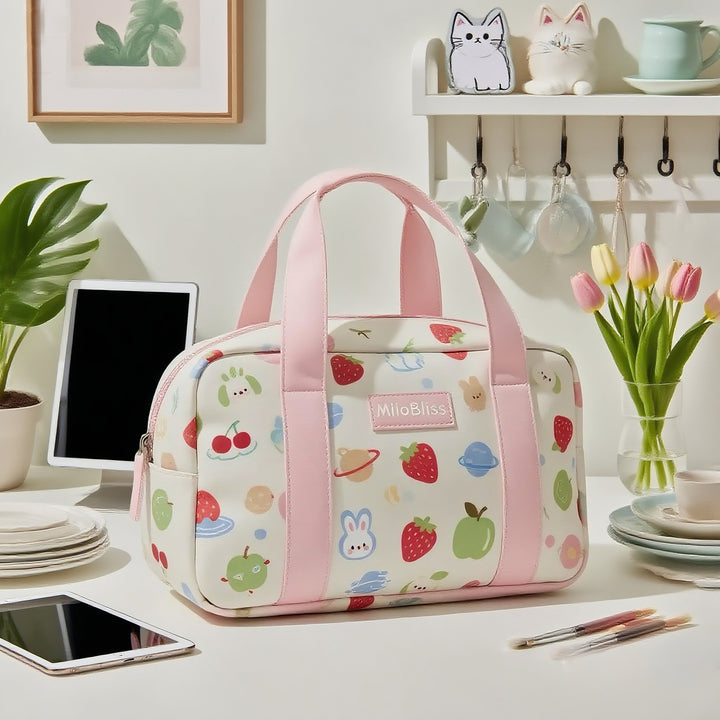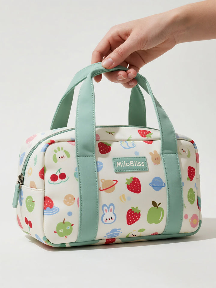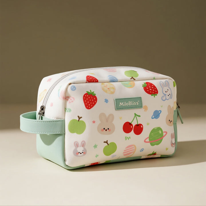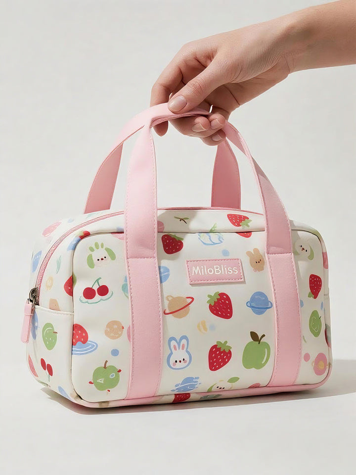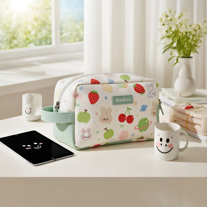 Customized cute printed portable cosmetic bag, fruit cute rabbit pattern, large capacity hand carry storage bag, portable toilet bag