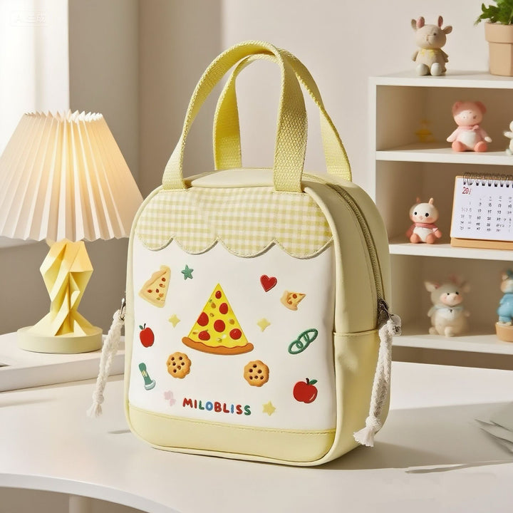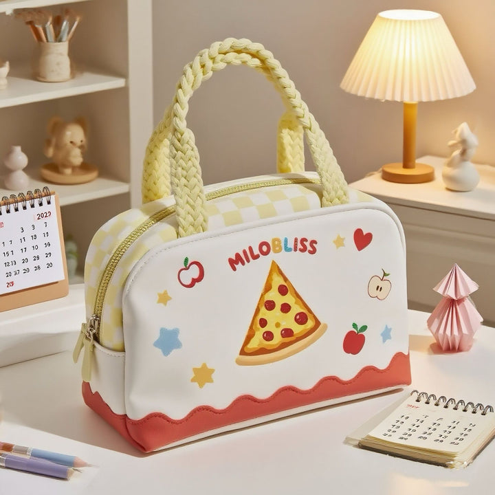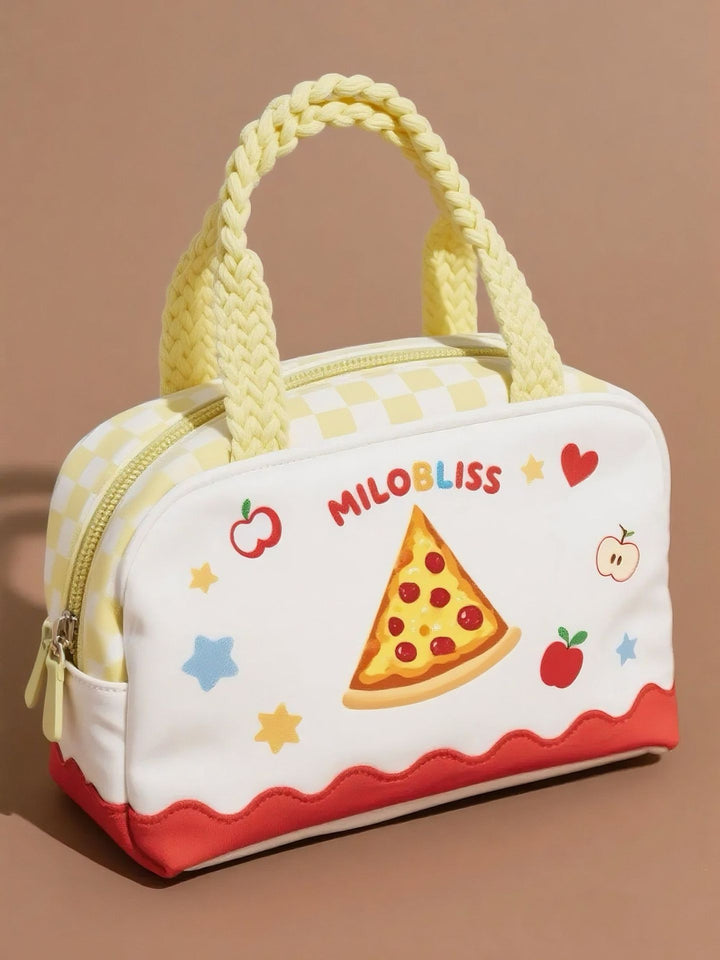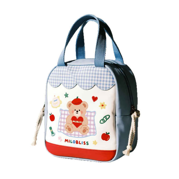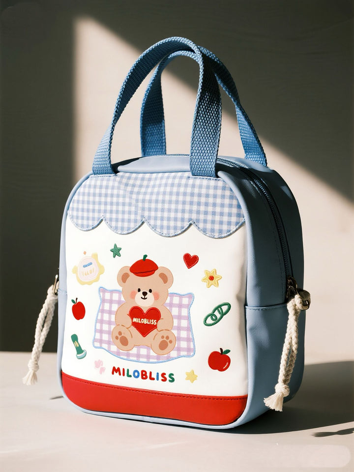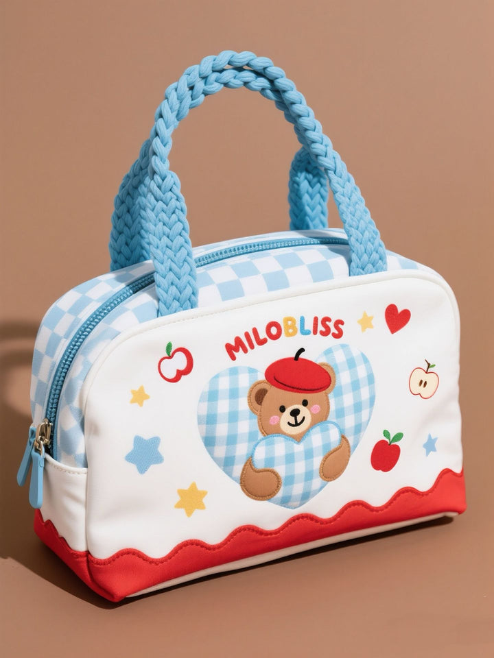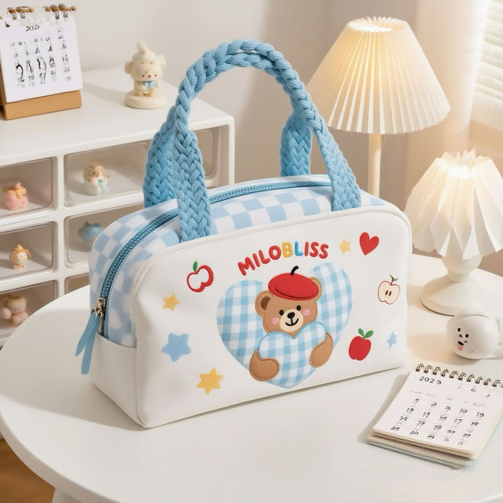 Customized fresh blue plaid portable cosmetic bag cartoon bear printing multi-function portable daily travel storage bag