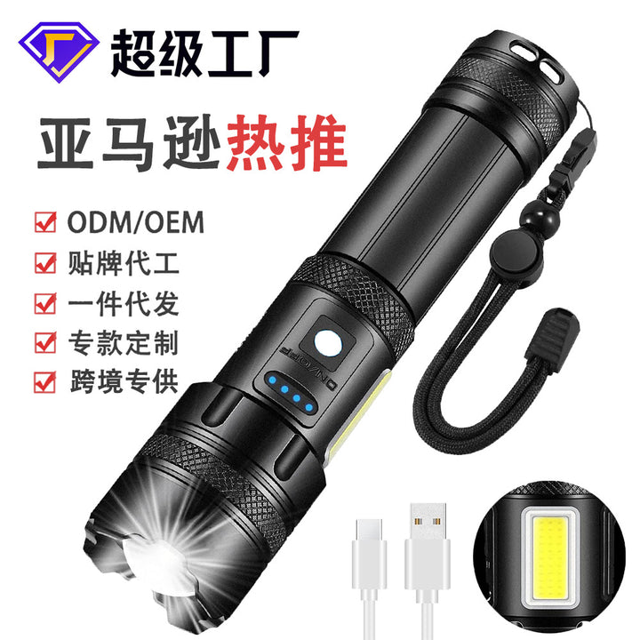 Customized hot-selling strong light flashlight, support OEM 26650 charging zoom multi-function flashlight