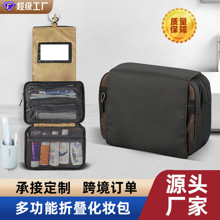 Customized large-capacity cosmetic bag with mirror, travel business trip toilet bag, portable wet and dry separation storage bag, customized.