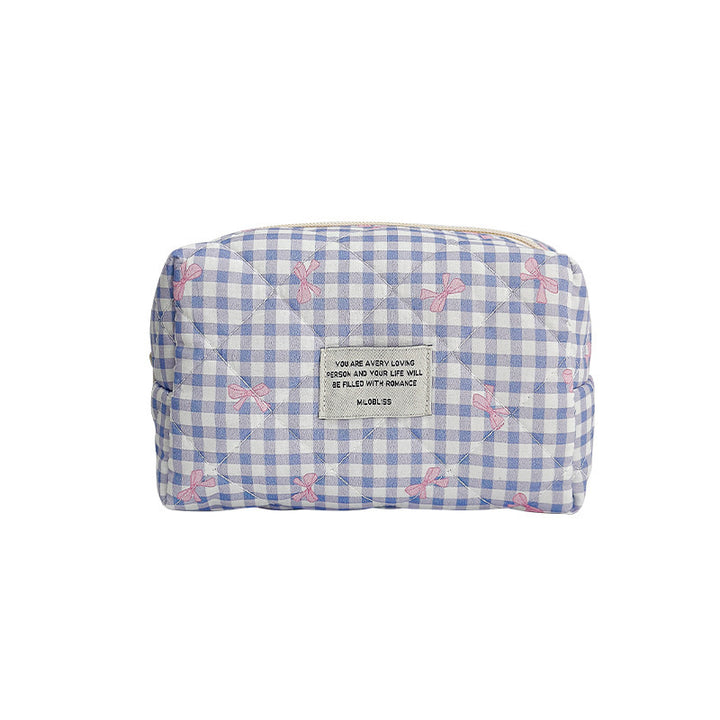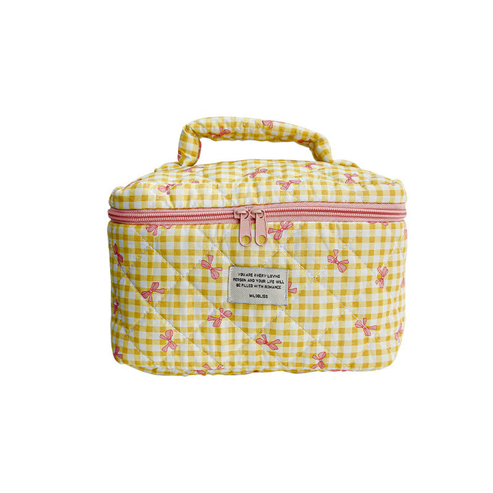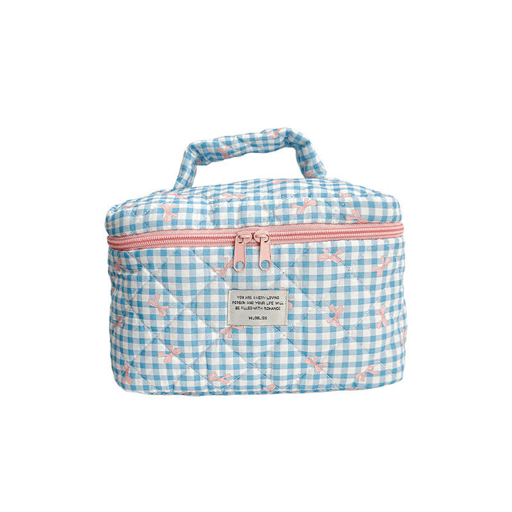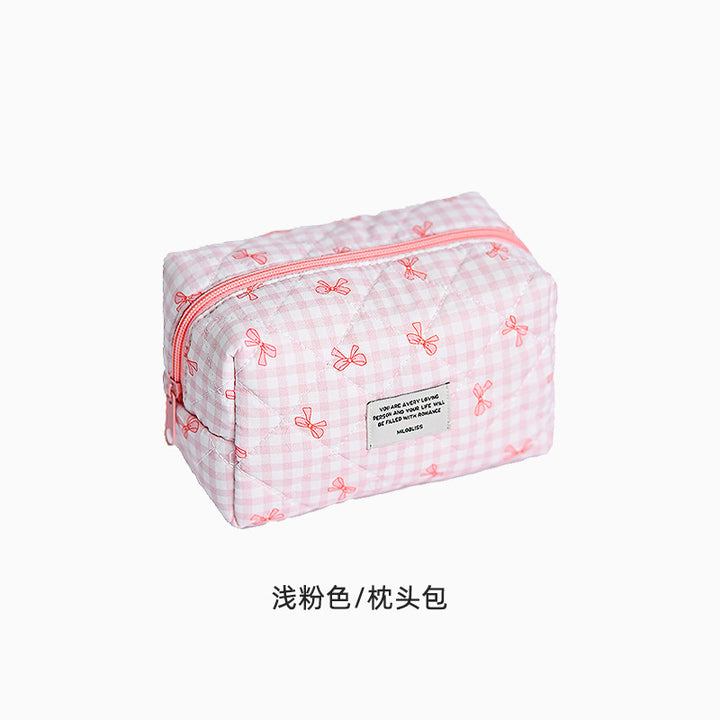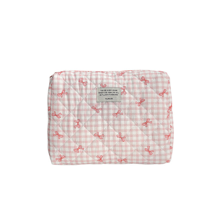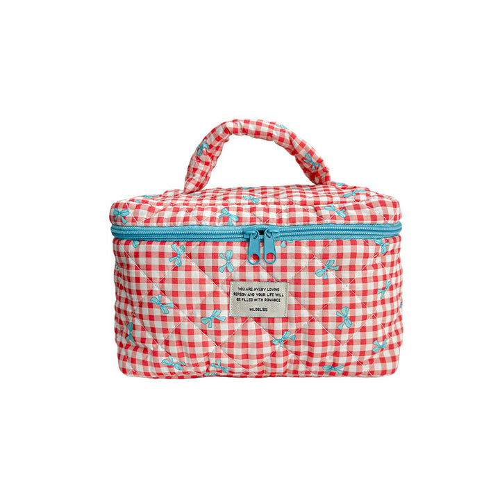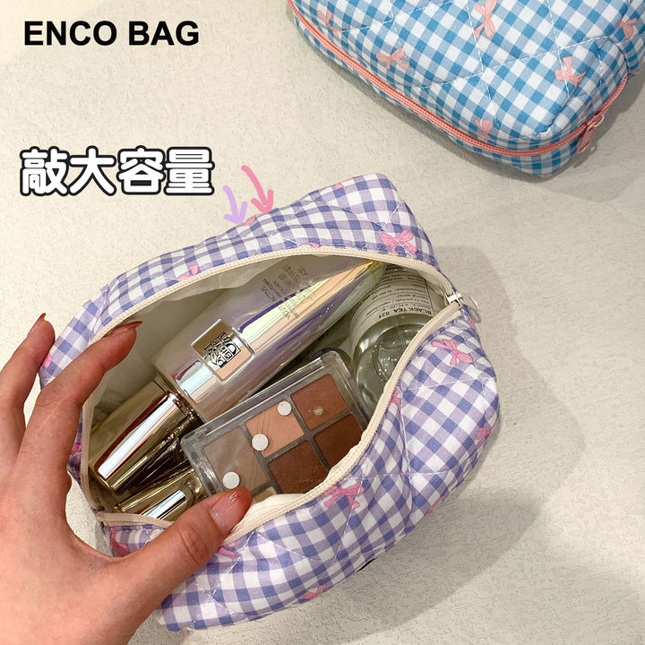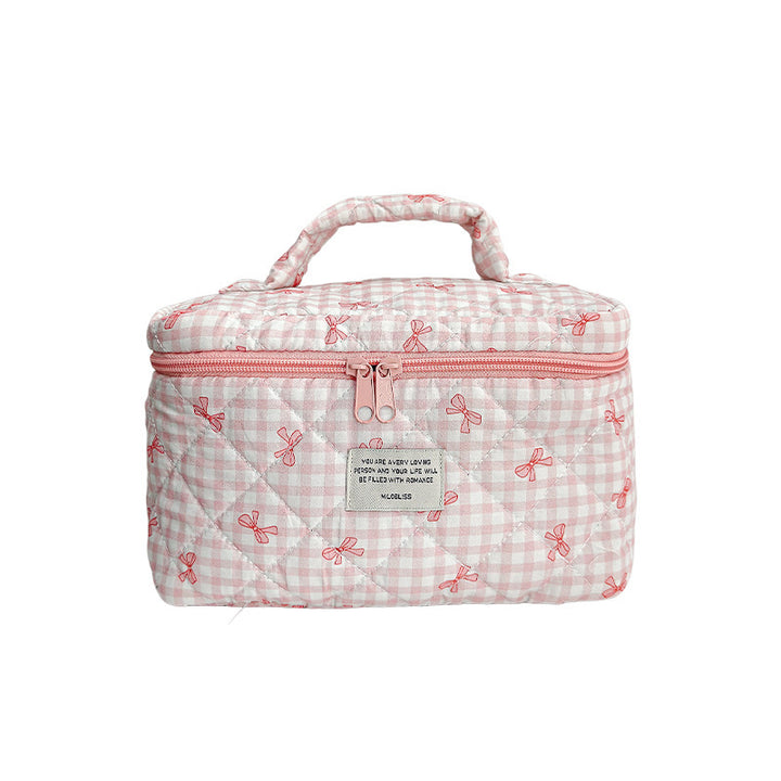 Customized manufacturer bow cosmetic bag large capacity quilted storage bag portable handbag wash bag high value
