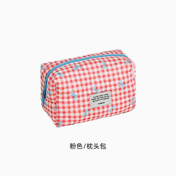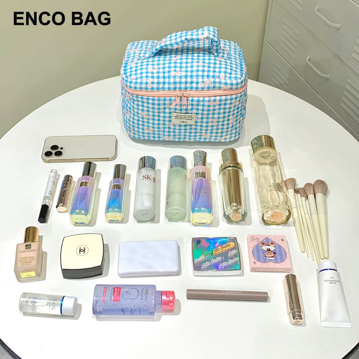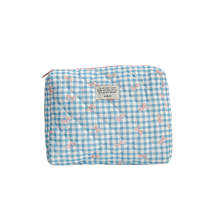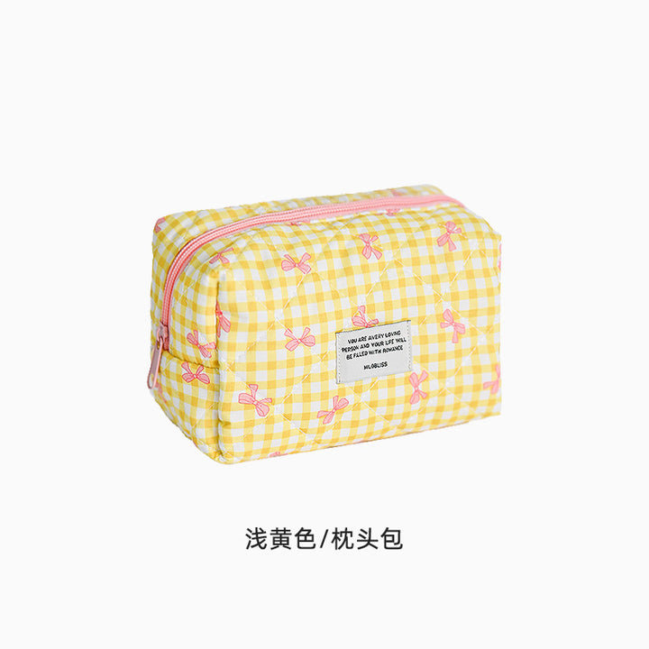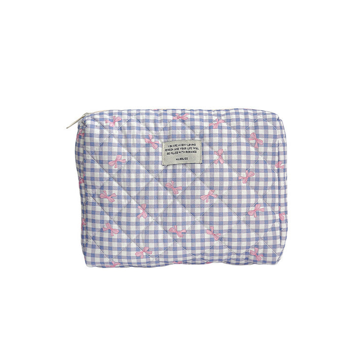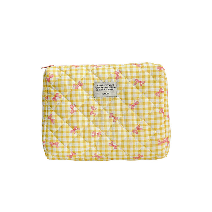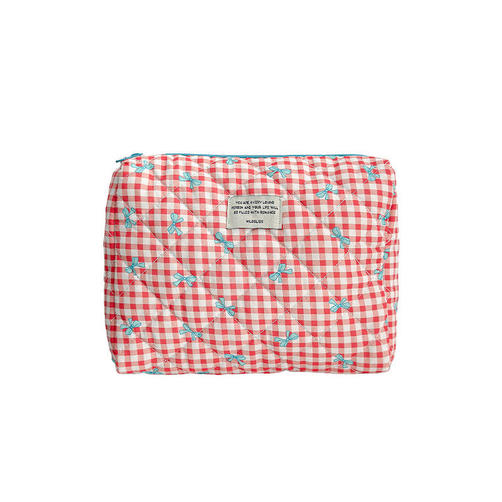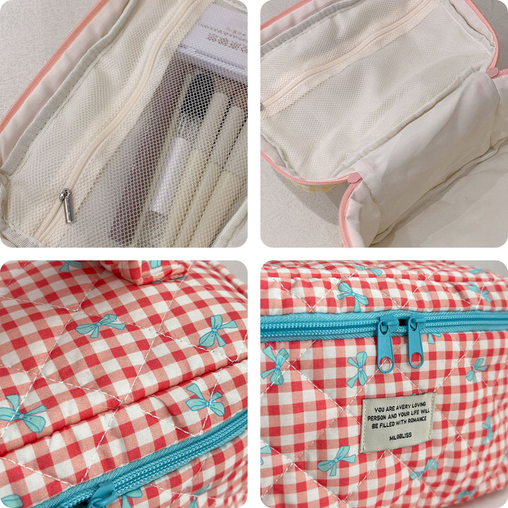 Customized manufacturer bow cosmetic bag large capacity quilted storage bag portable handbag wash bag high value