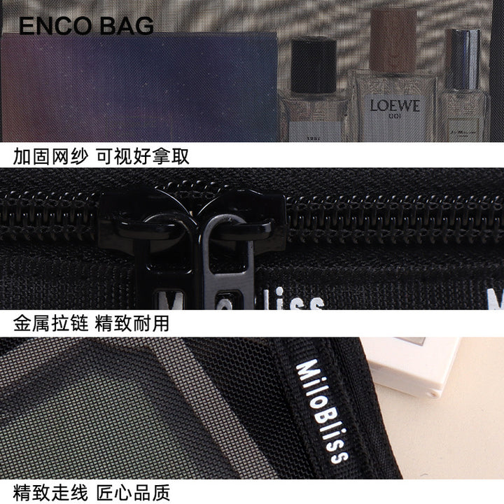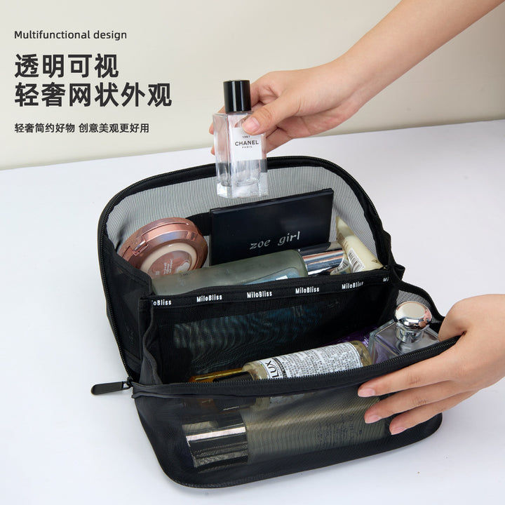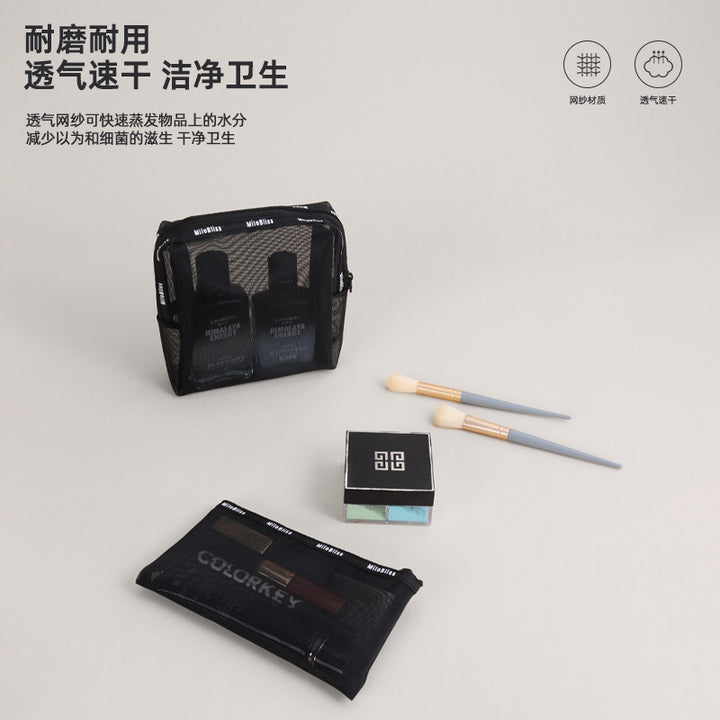 Customized manufacturer mesh cosmetic bag, travel storage bag, makeup brush, cosmetics ins large-capacity washing and toiletry bag