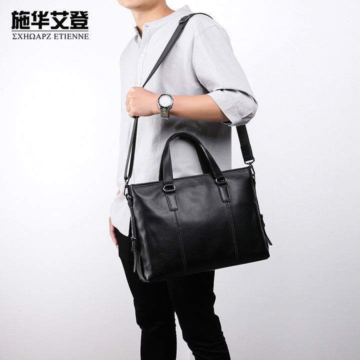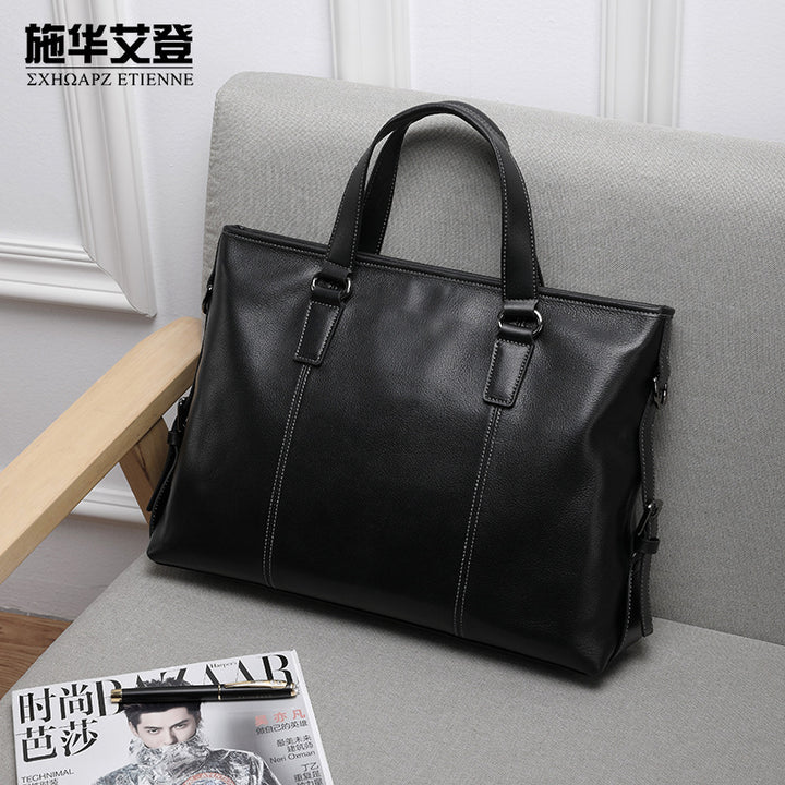 Customized men's bags, genuine leather men's casual handbags, first-layer cowhide computer bags, business commuter horizontal briefcases