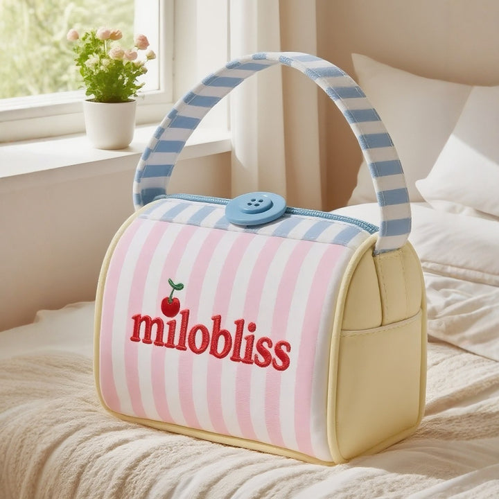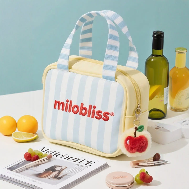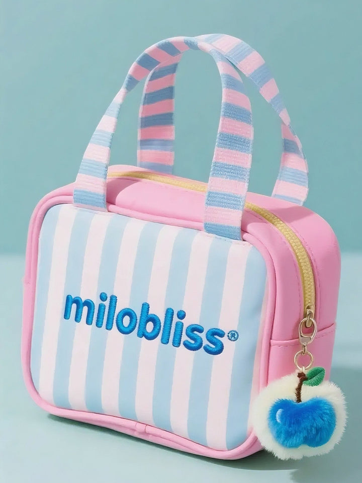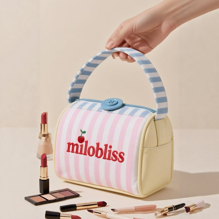 Customized new Korean color matching striped hand carry cosmetic bag, skin care product storage bag, cute large-capacity cosmetic bag