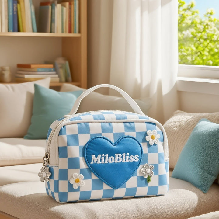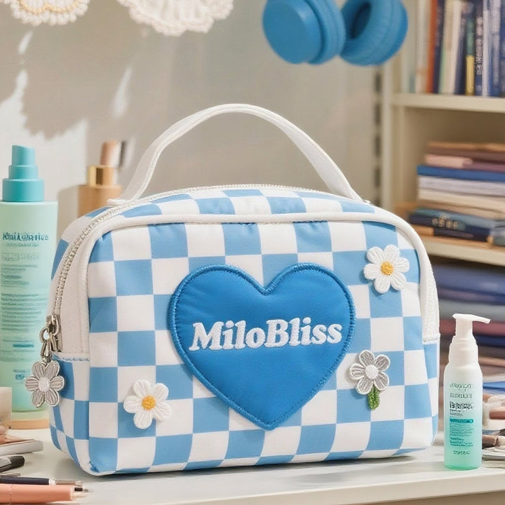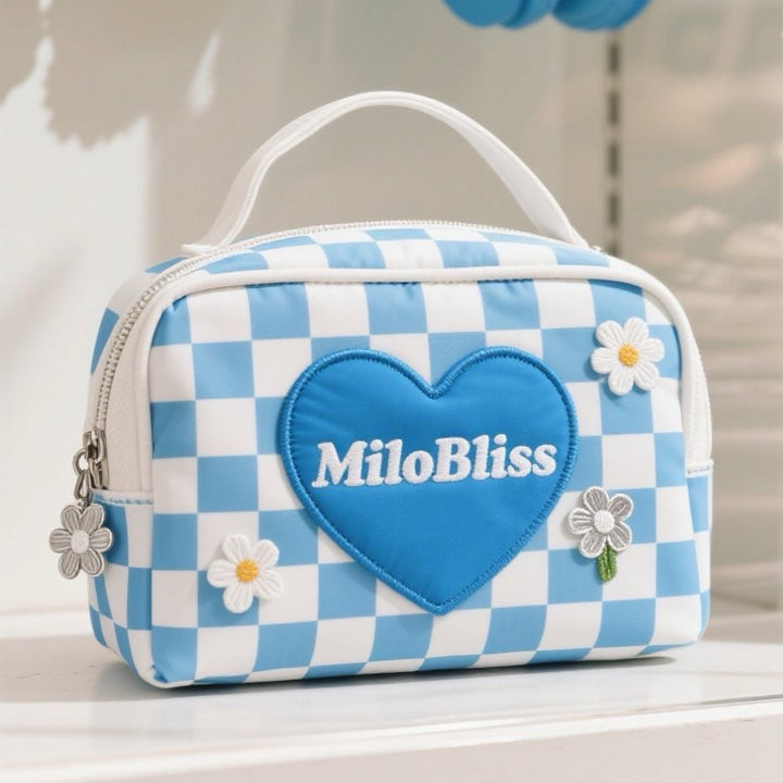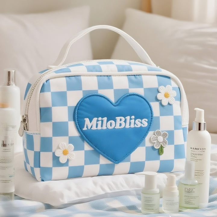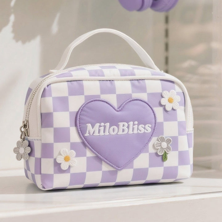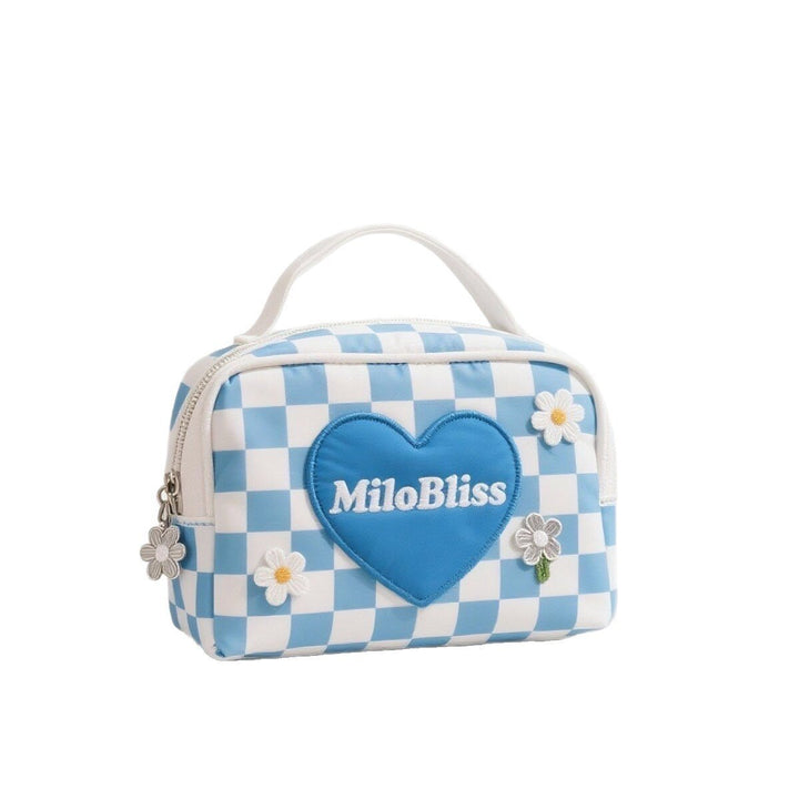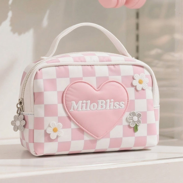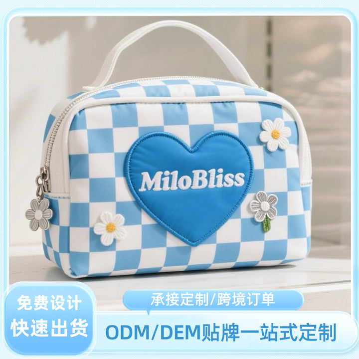 Customized niche design color matching plaid apple love cute portable storage bag going out travel cosmetic bag