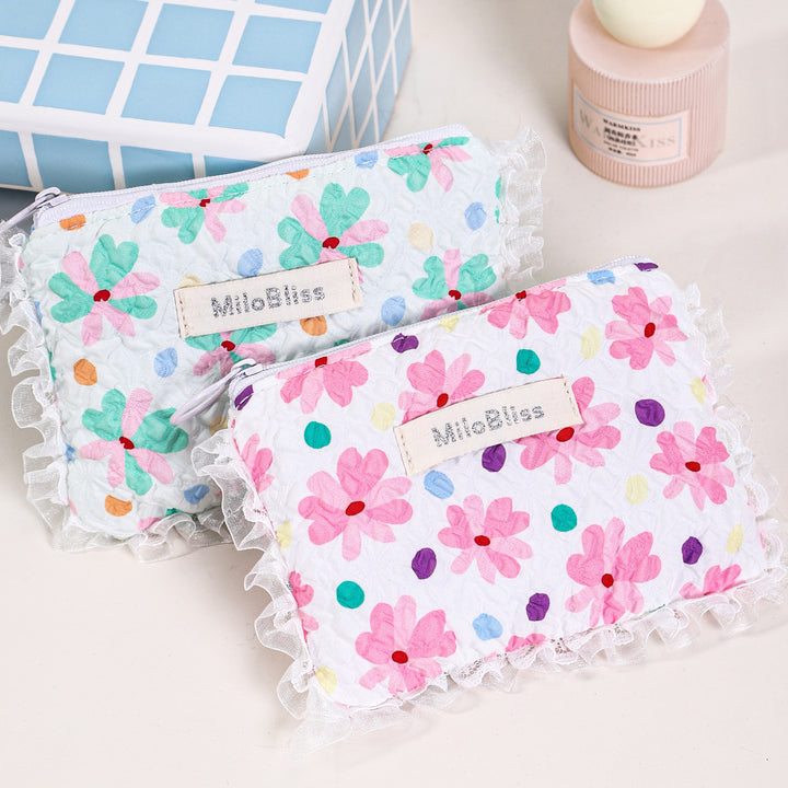 Customized small fresh flower cosmetic bag girl heart clutch bag going out travel portable cosmetics storage bag