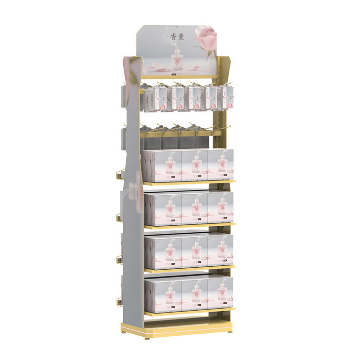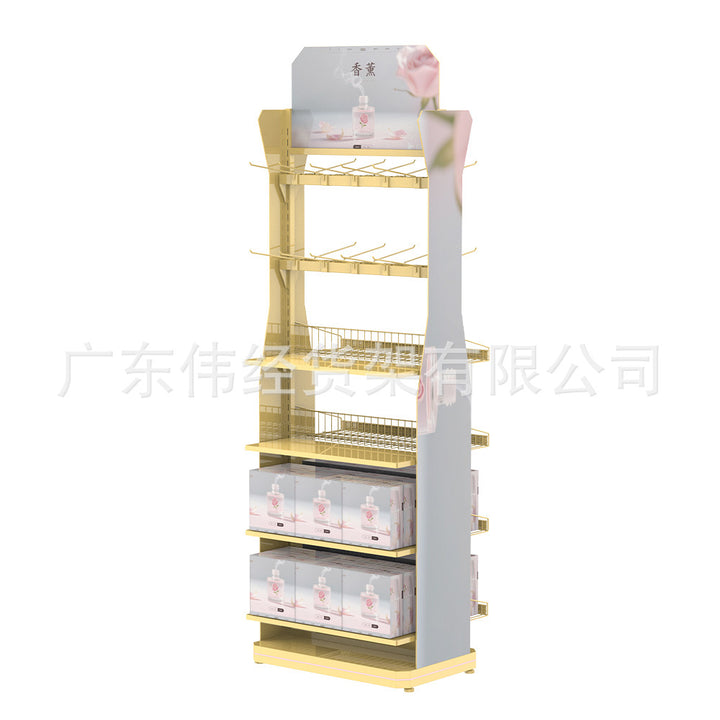 Customized supermarket metal display rack Floor-to-ceiling double-sided display rack Skin care products daily necessities display rack Multi-layer ...