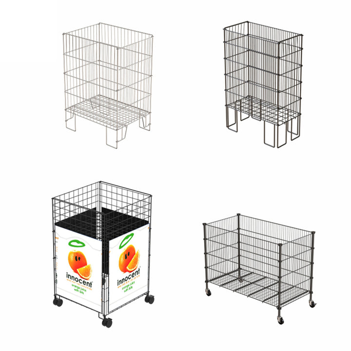 Customized supermarket promotional cage Folding turnover basket Supermarket daily necessities Clothes storage basket Metal storage cage
