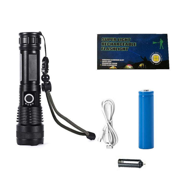 Customized XHP50 strong light flashlight USB rechargeable aluminum alloy flashlight, outdoor telescopic zoom waterproof flashlight