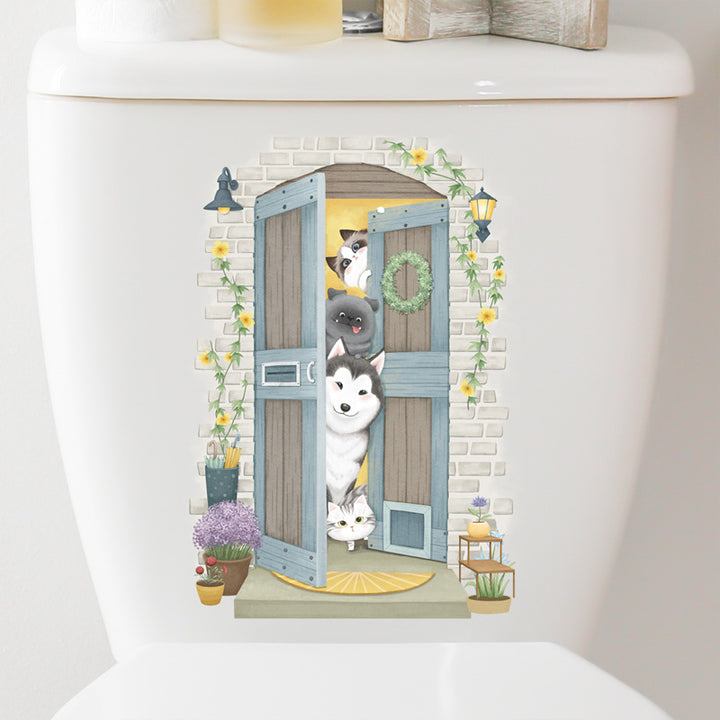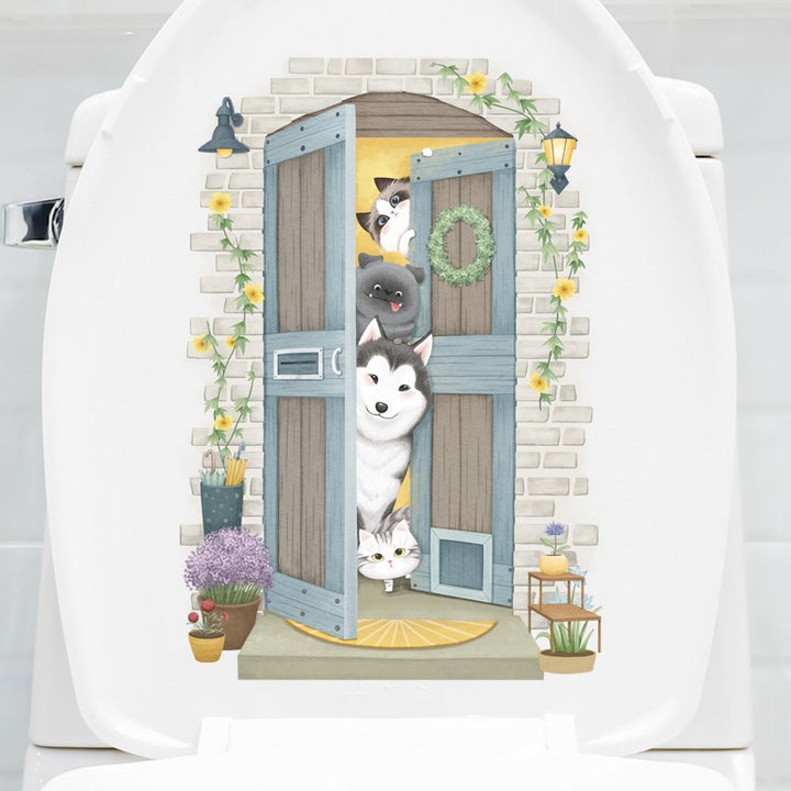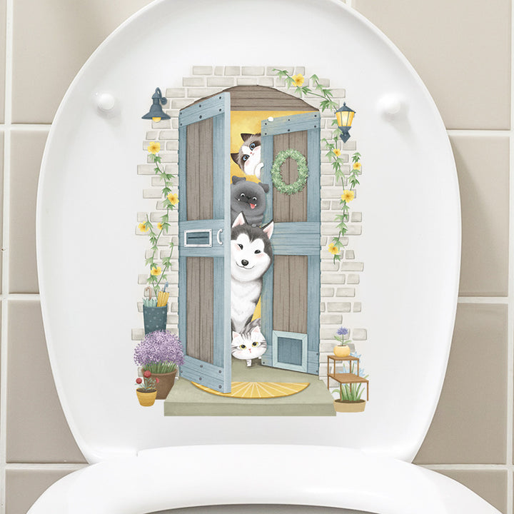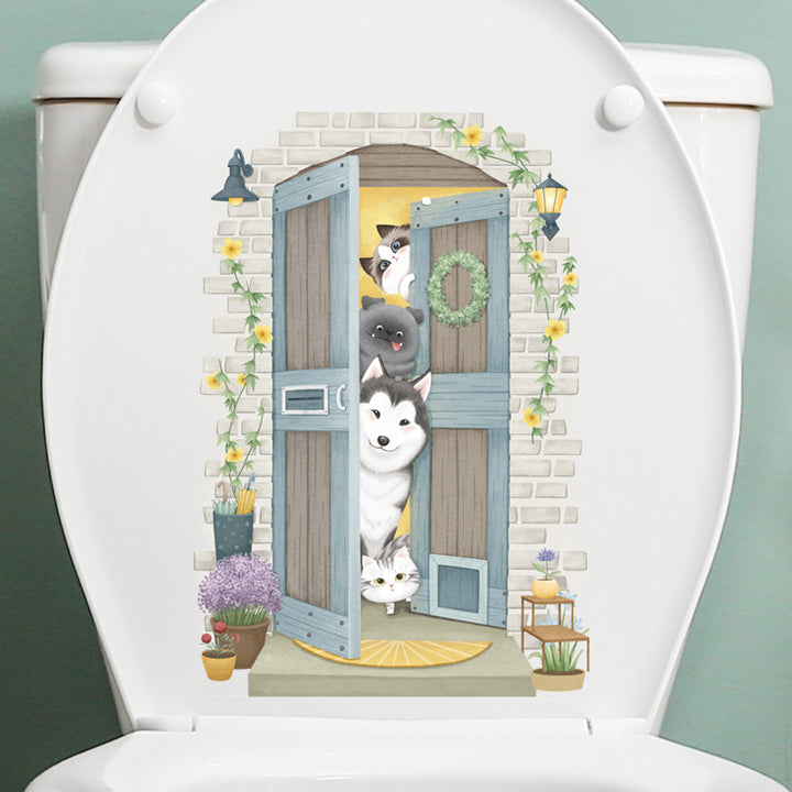 Cute animal toilet sticker bathroom toilet lid decorative sticker cartoon pet dog wall sticker, Princess Erha